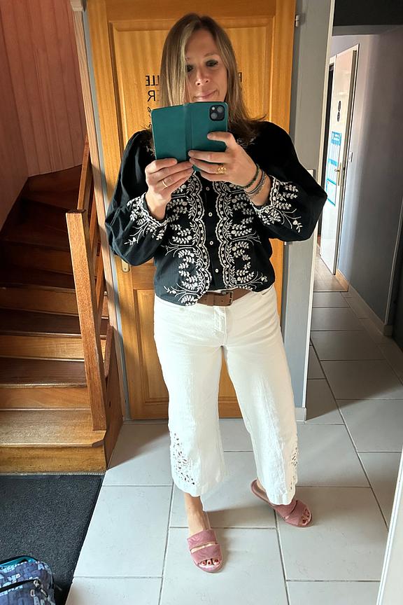 Pour un look chic et intemporel, associez cette chemise avec un pantalon taille haute et des bottines. Idéale pour l'hiver, elle vous garde au chaud avec style. • Chemise en coton • Manches bouffantes • Col chemise • Boutons sur le devant • Motif brodées