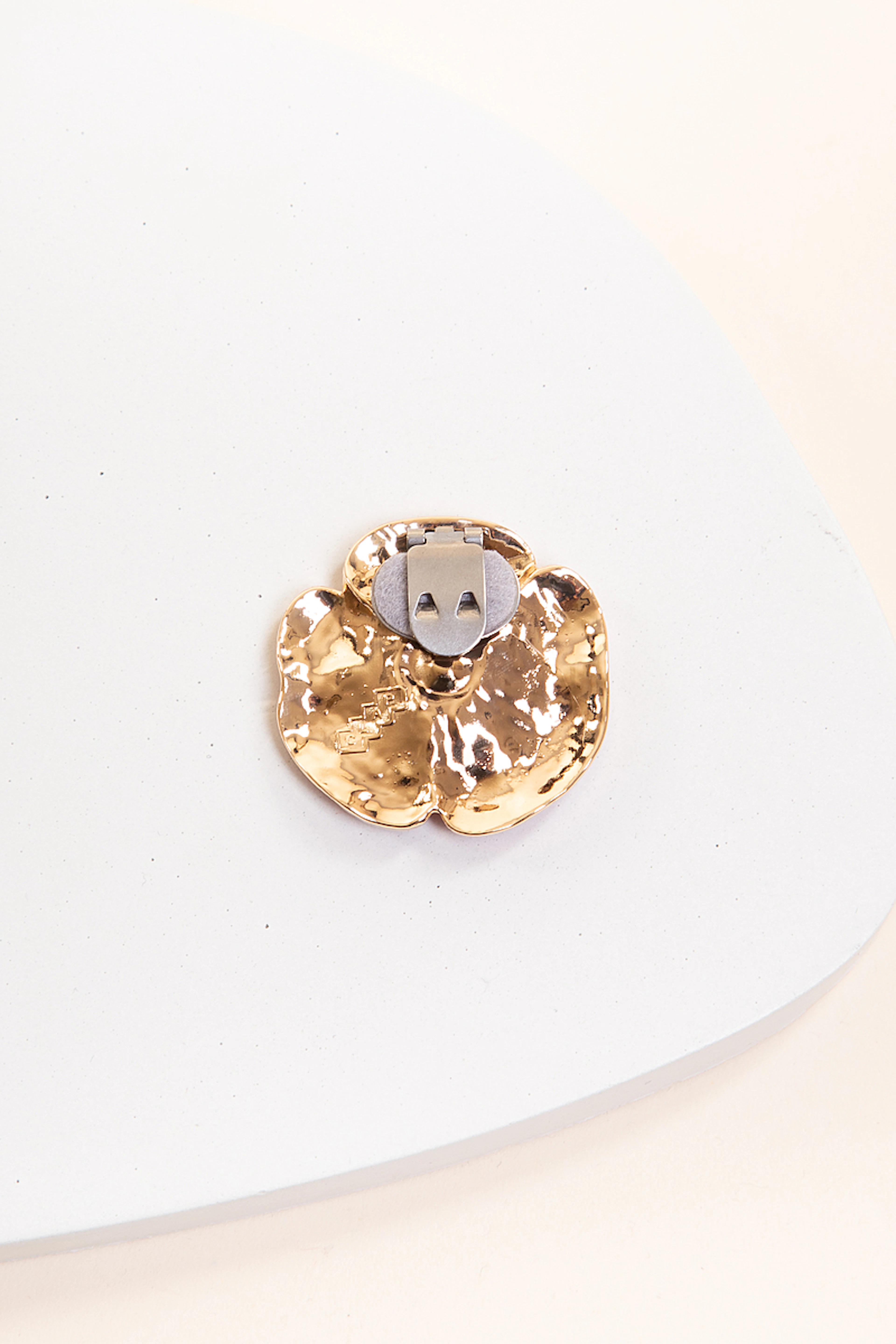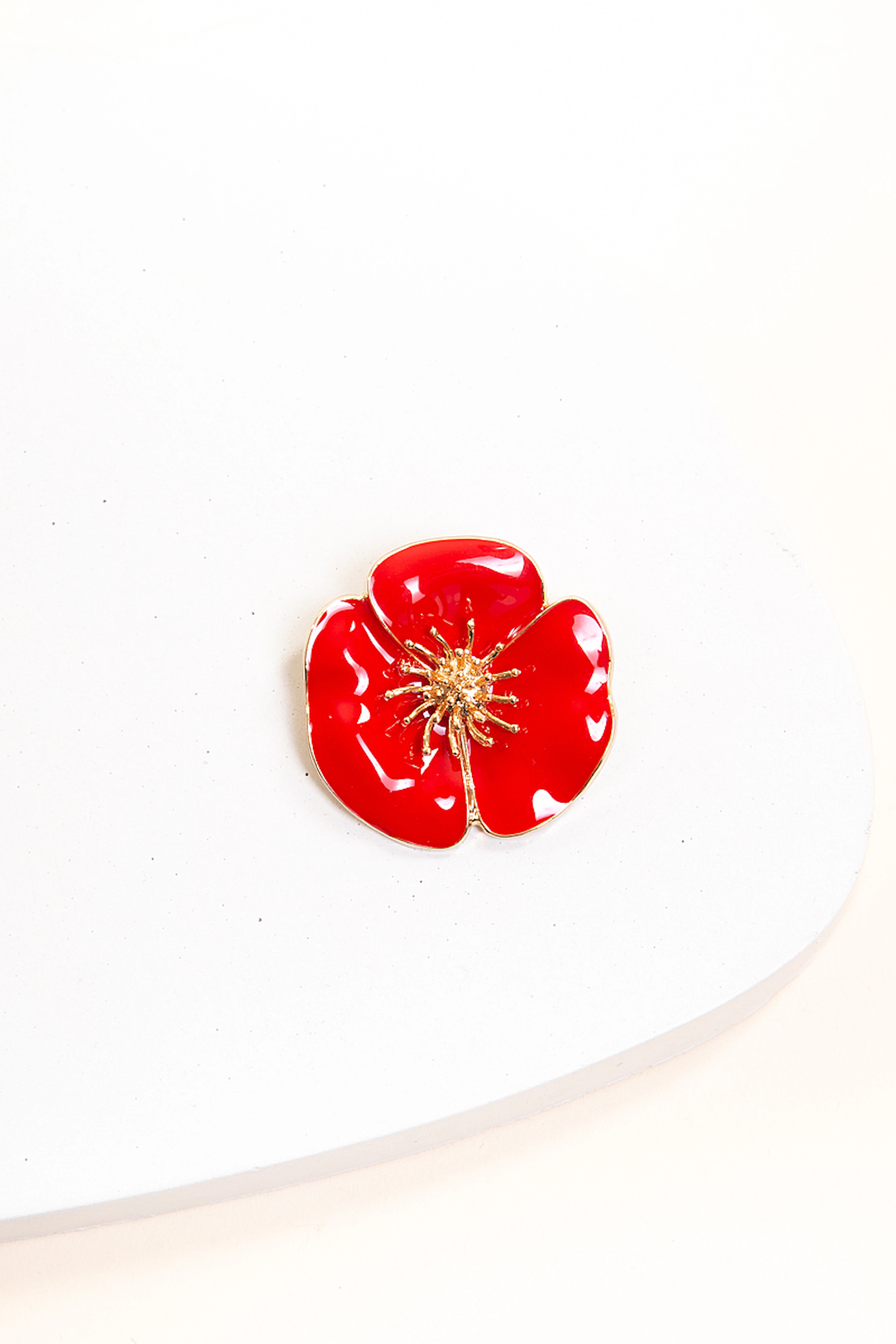 Le Clap Poppy, c'est le bijou-clip en forme de coquelicot qui sublimera aussi bien votre veste que votre sac à main ! Ce bijou en métal zamac doré et émail rouge mesure 5 cm de long.