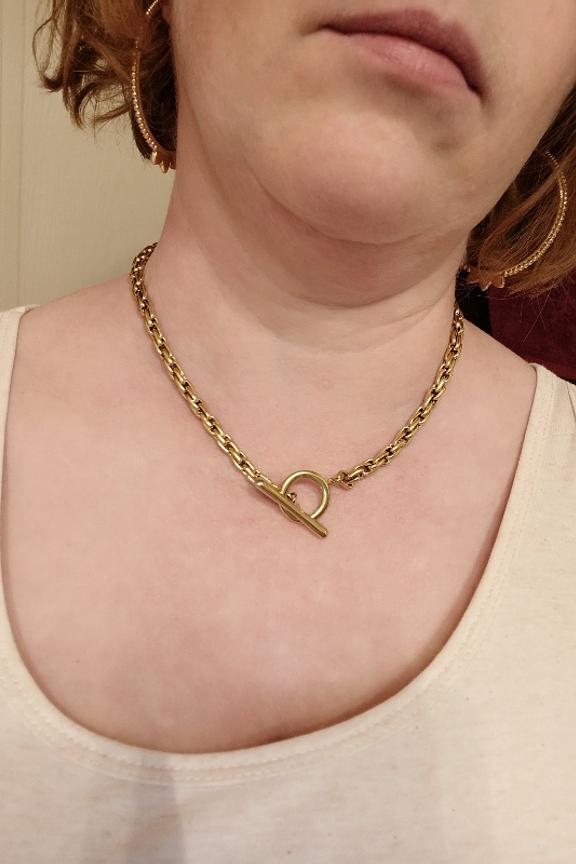โข Collier chaine gros maillons โข Acier Inoxydable : ne noircit pas ! โข Dรฉtail fermoir en T