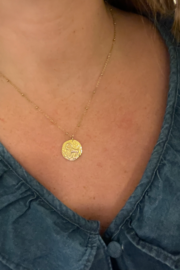 โ€ข Collier sur chaine rรฉglable avec pendentif au motif du signe du zodiaque โ€ข Dimensions : 38+7 cm Hypoallergรฉnique, ce bijou rรฉsiste ร  l'eau et ne noircit pas