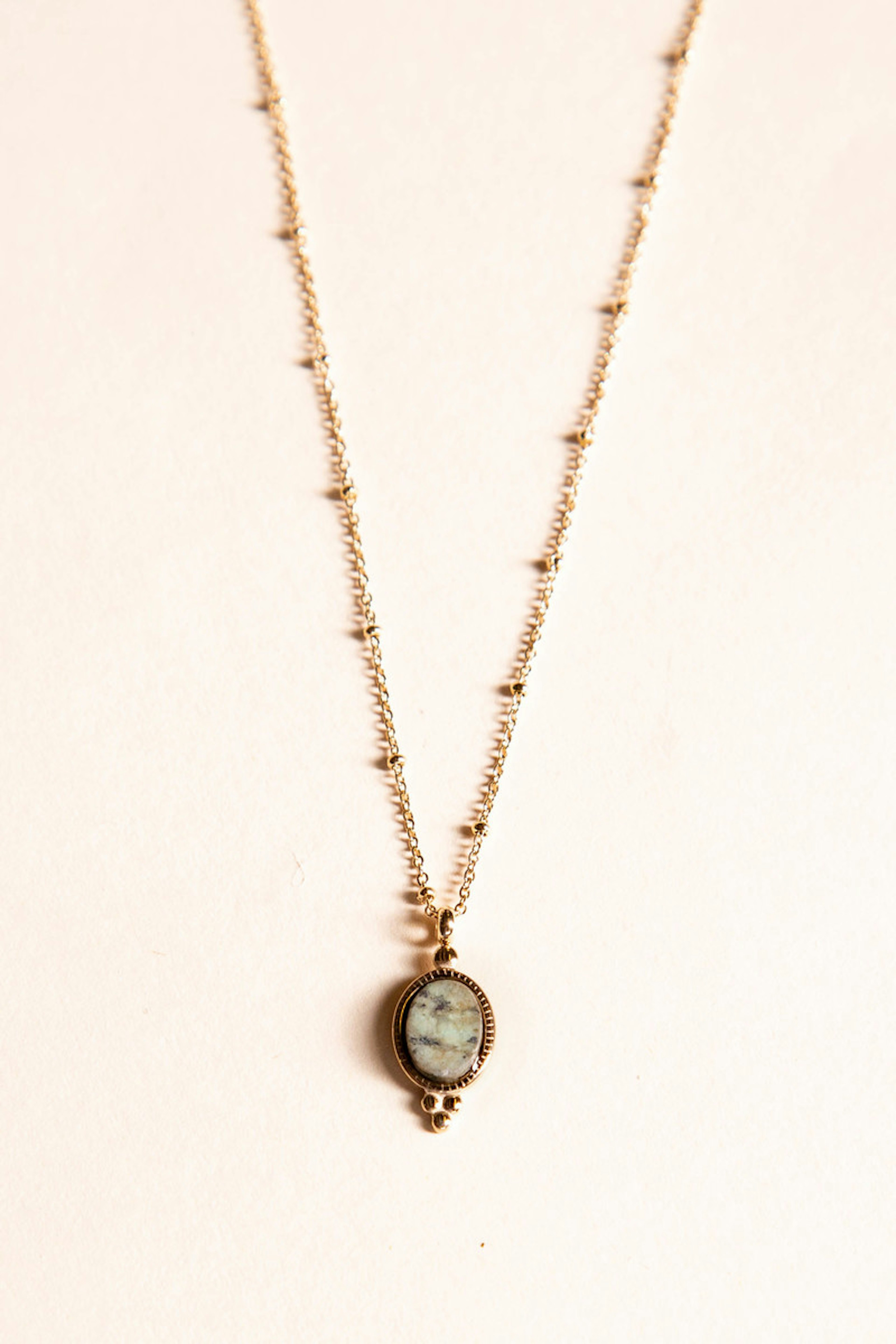 Aurora est un modรจle vintage grรขce ร sa pierre marbrรฉ dans les tons bleutรฉs, ce qui nous donne une profonde nostalgie. Il s'associera trรจs bien sur un col roulรฉ comme sur un dรฉcolletรฉ !