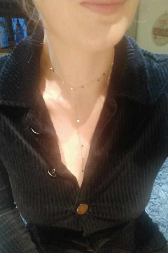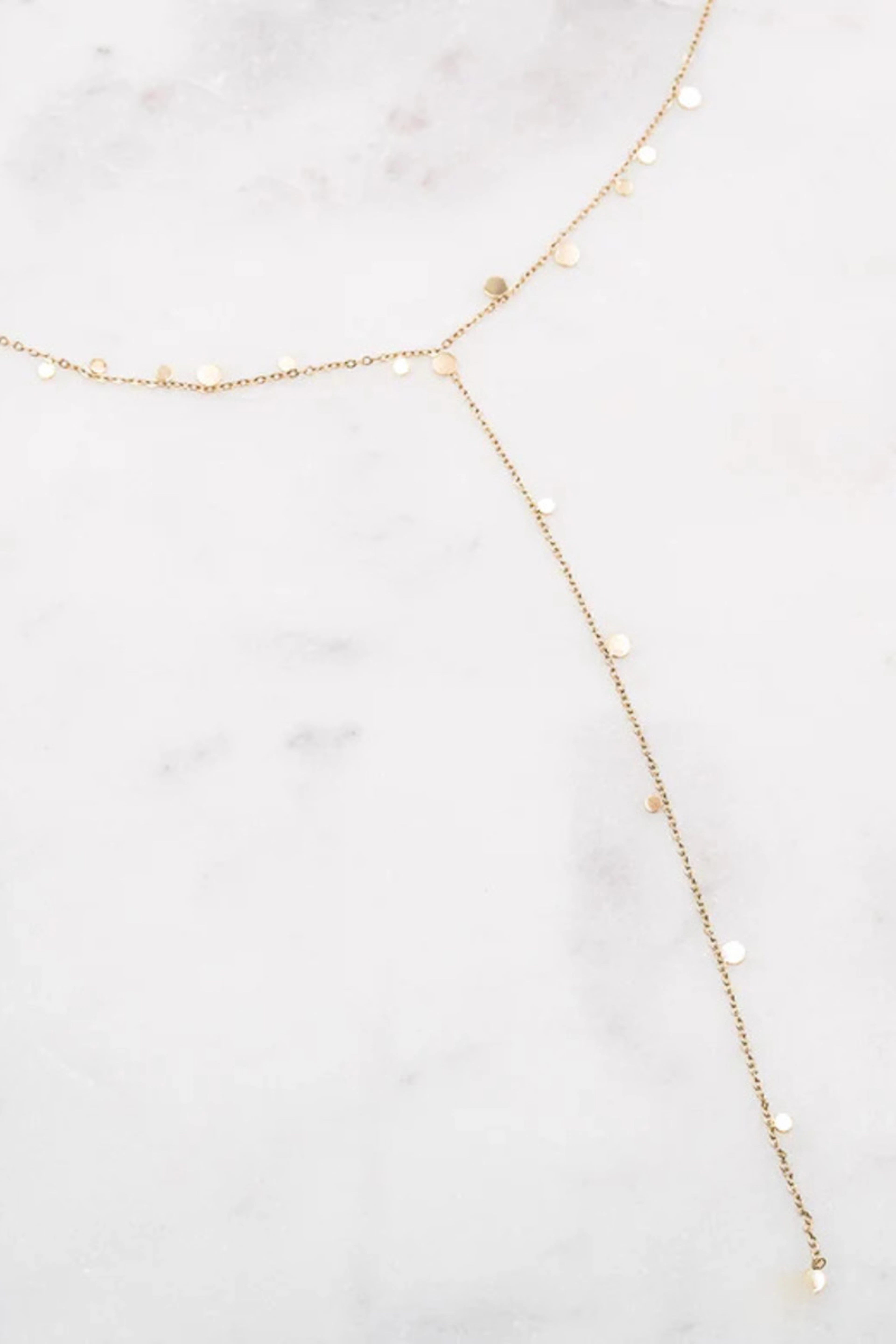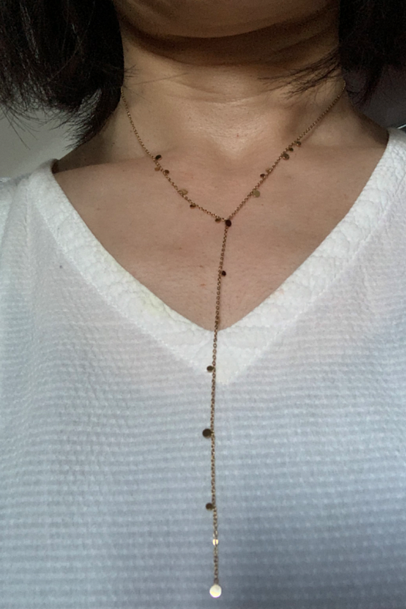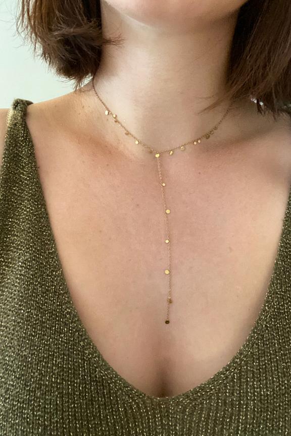 • Collier sur chaine Y composé de pampilles rondes. • Matière : Acier inoxydable • Longueur : 38 / 13 cm + 7 cm de chaînette • Hypoallergénique, ce bijou résiste à l'eau et ne noircit pas.