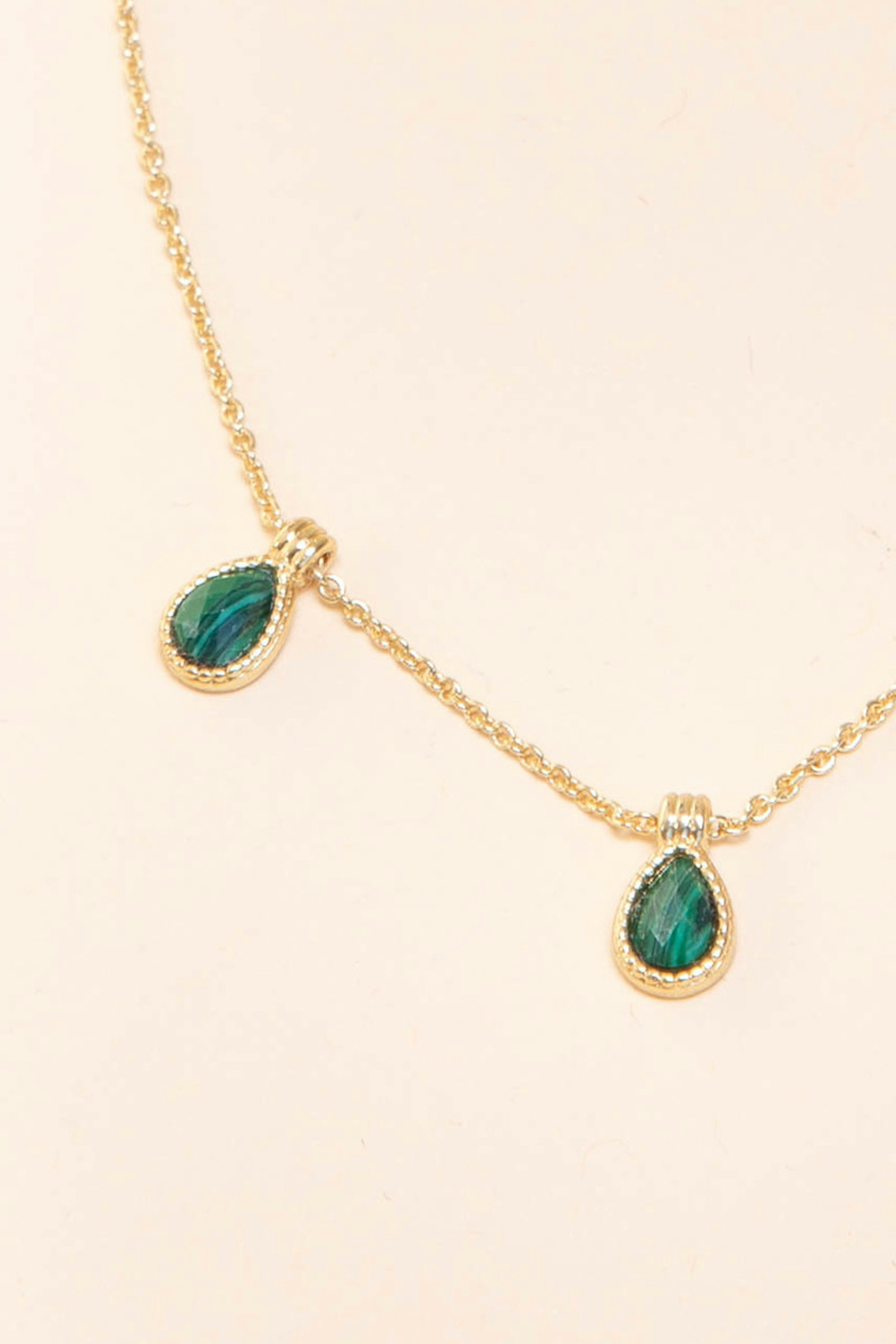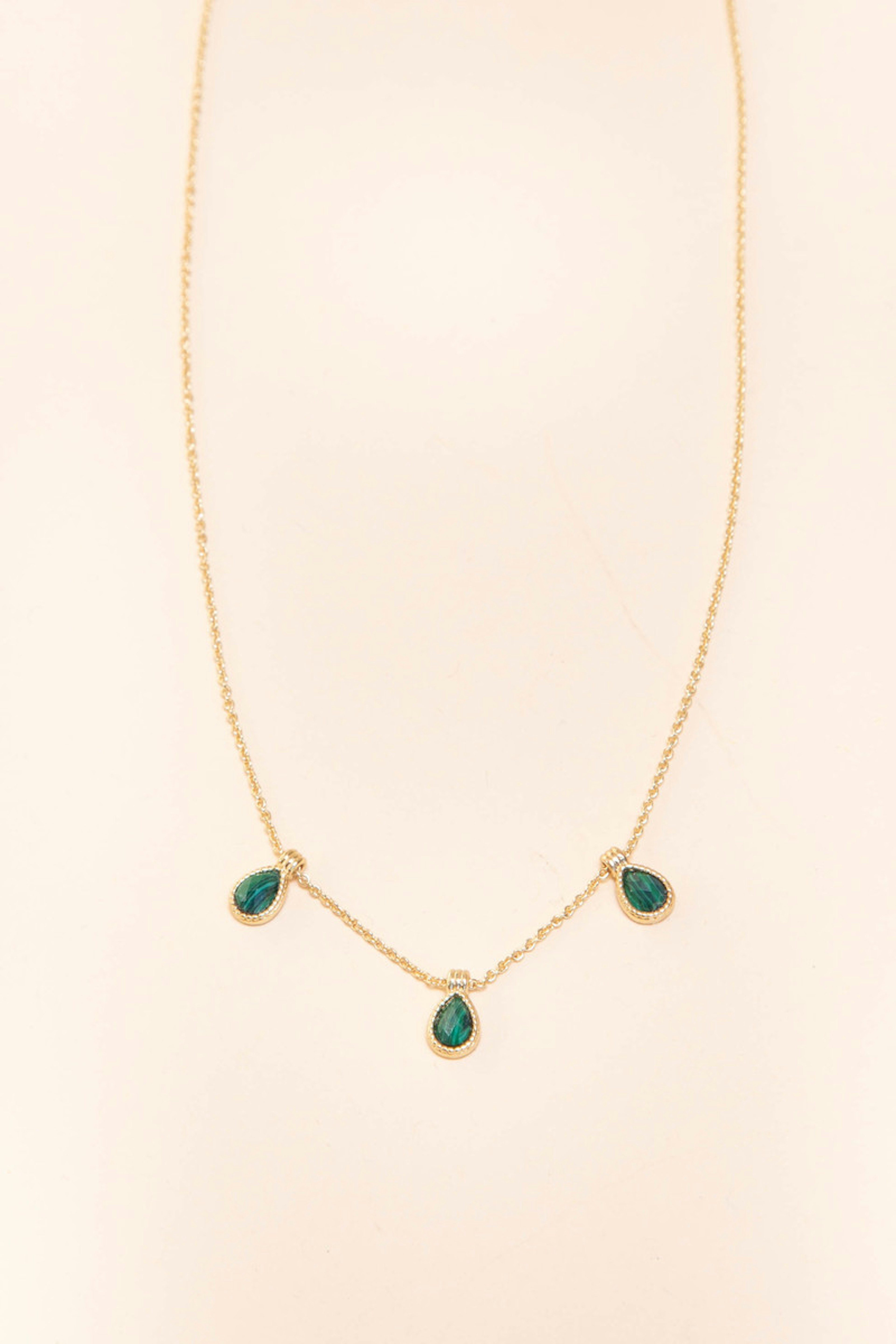 Le collier Hasna sublimera votre port de tรชte grรขce ร ses trois jolies gouttes ornรฉes de pierres de malachite. Emma & Chloรฉ propose des bijoux dessinรฉs et crรฉรฉs dans leur atelier parisien. La marque apporte une attention particuliรจre au design ainsi qu'au choix des matรฉriaux.
