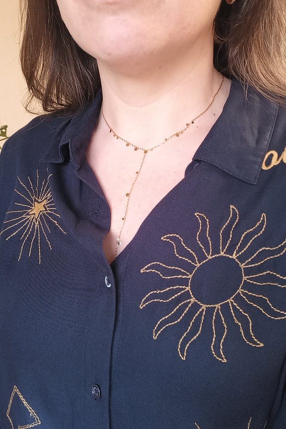 Ce collier minimaliste s'accorde merveilleusement avec une blouse en soie ou une robe à encolure dégagée, pour un look chic et intemporel, parfait en toute saison. • Collier en acier inoxydable • Design épuré et moderne • Chaîne fine et délicate • Élément central en Y • Fermeture réglable