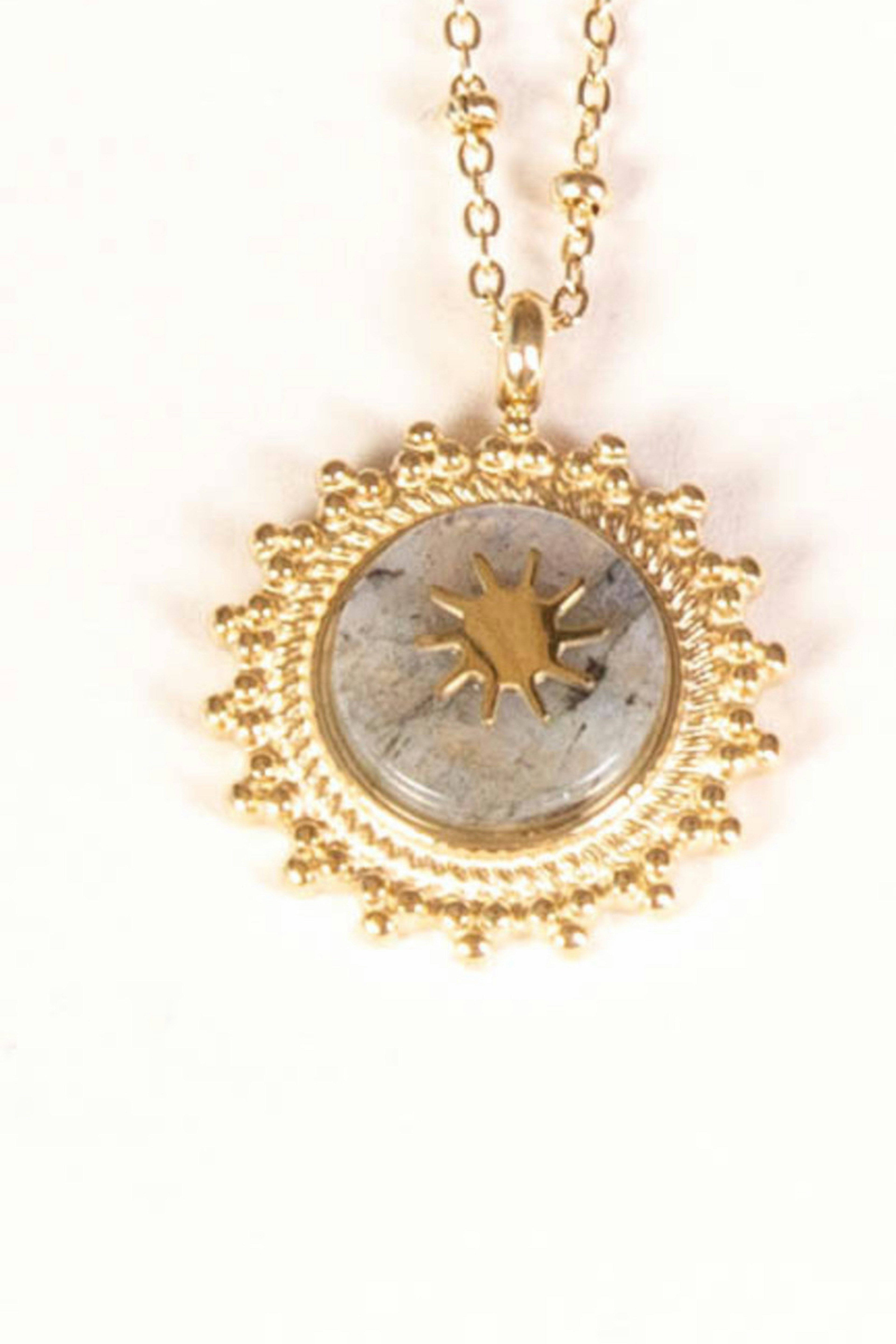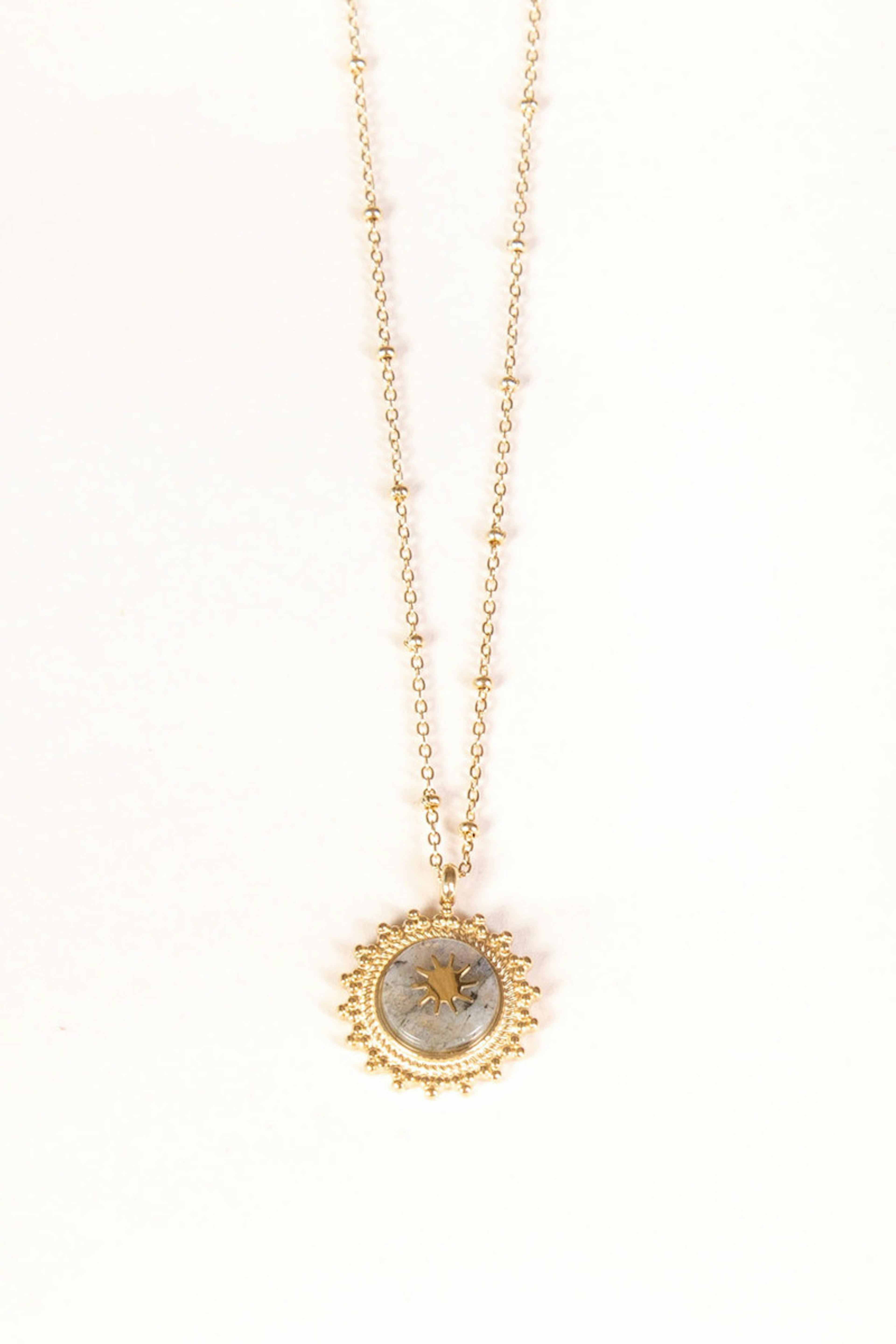 On adore la dรฉlicatesse de la chaรฎne du collier Karen, ainsi que la couleur de sa pierre.