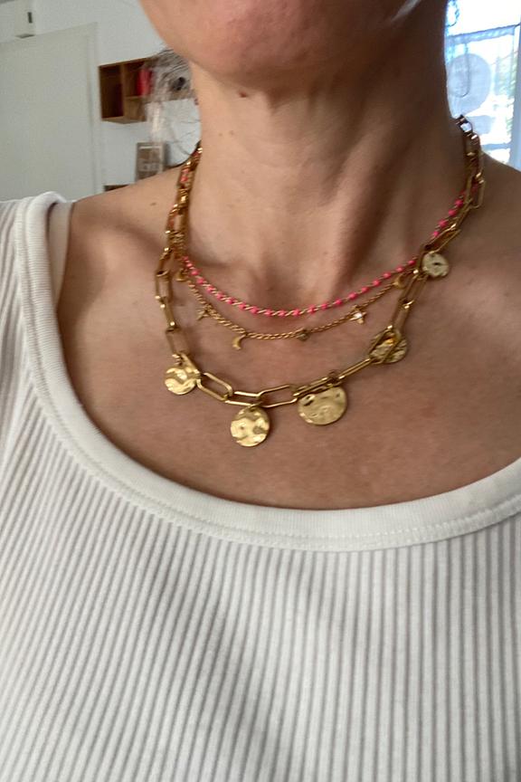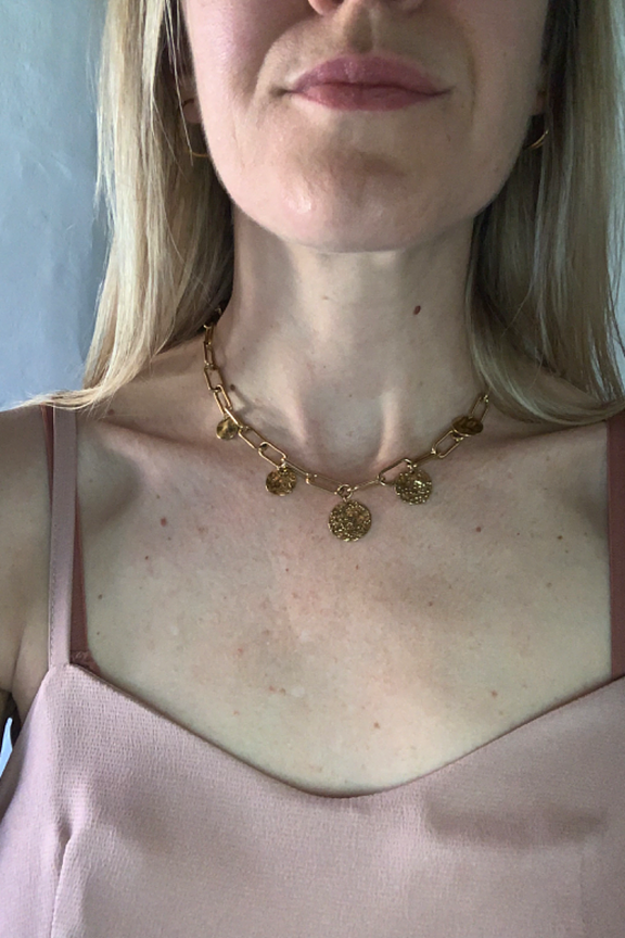โข Collier Latina โข Chaรฎne dorรฉe โข Mรฉdaillon ร texture martelรฉe โข Longueur ajustable