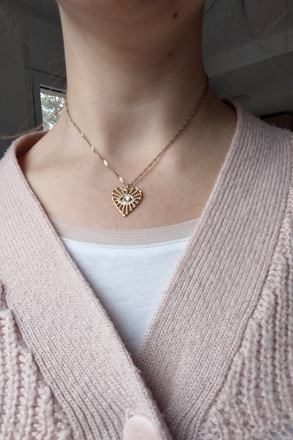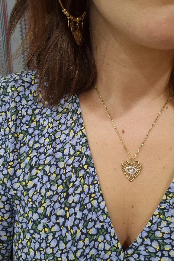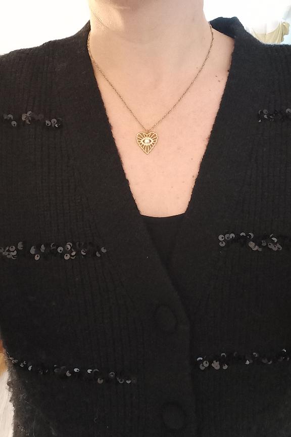 โข Collier en acier inoxydable composรฉ d'un coeur ajourรฉ ornรฉ d'une strass centrale et de zirconiums formant un iris โข Longueur de la chaรฎne : 38cm โข Longueur de la chaรฎne de rรฉglette : 7cm โข Longueur totale du collier : 45cm โข Dimension du pendentif : 1,9 x 2,2 cm โข Rรฉsiste ร lโeau et ne noircit pas