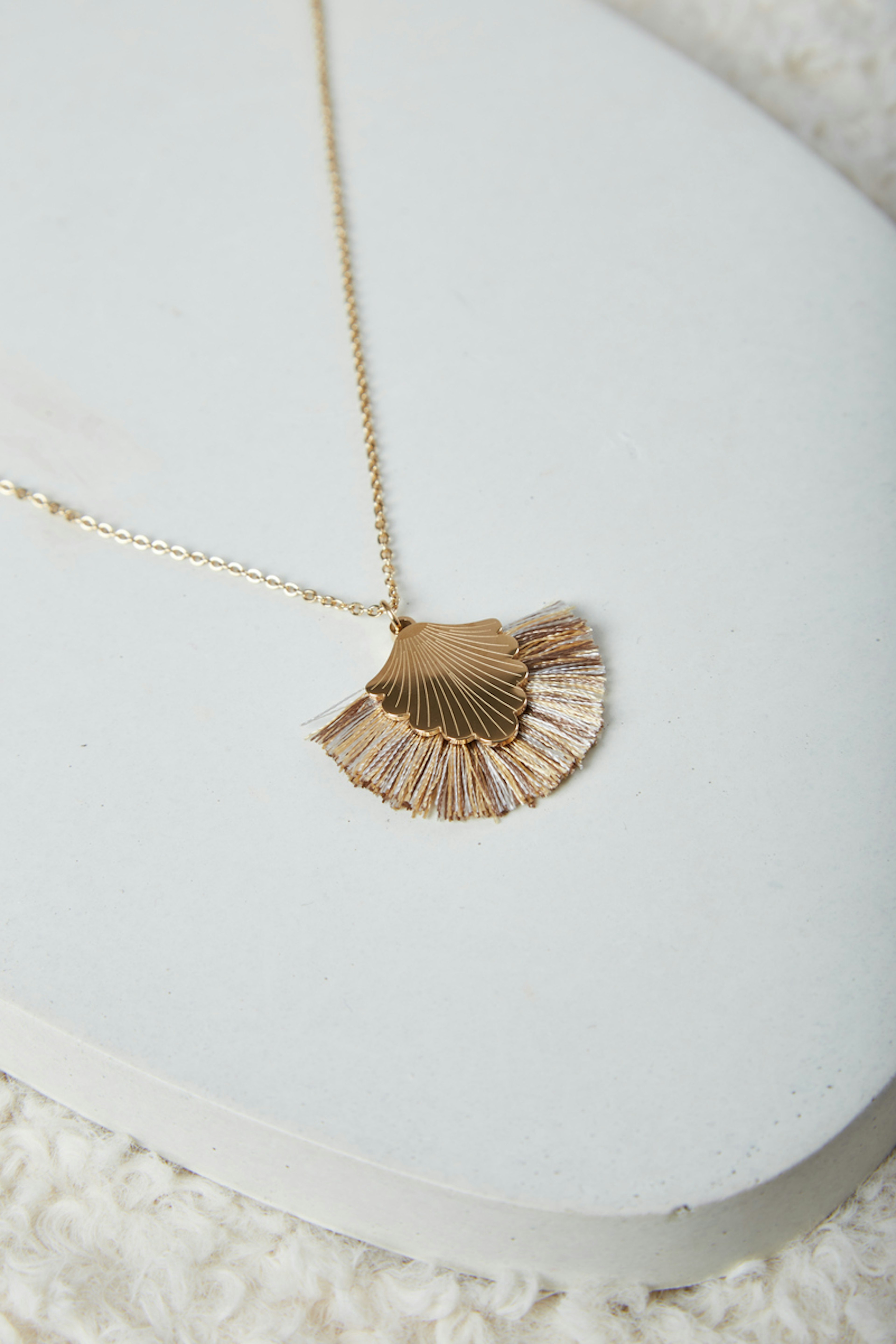 โข Collier dorรฉ composรฉ de pompons et motif feuille. โข 45 + 5 cm โข Conรงu en acier inoxydable โข Hypoallergรฉnique, il rรฉsiste ร l'eau et ne noircit pas. โข Bijoux garantis sans nickel, sans sel de plomb et sans cadmium