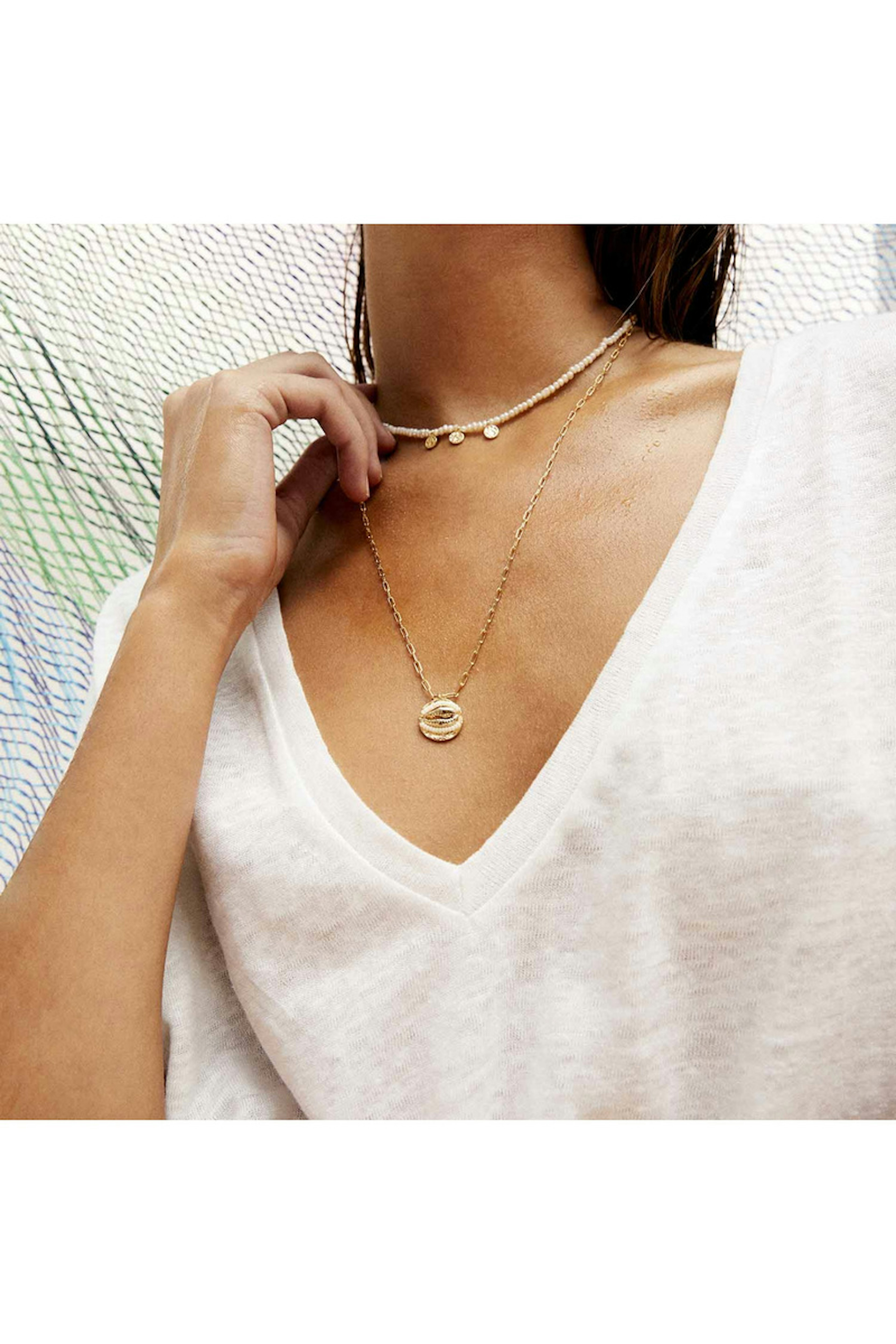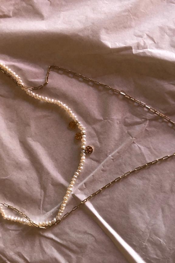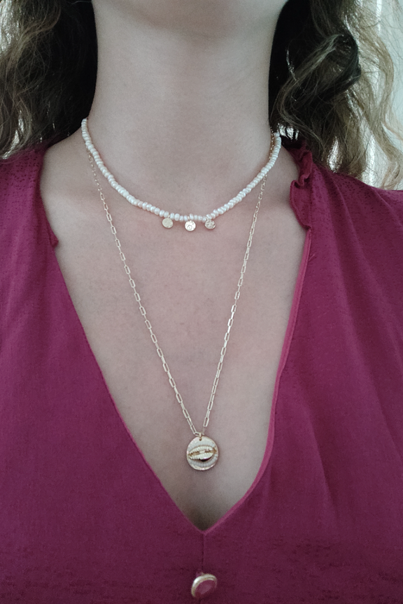 Double collier composรฉ d'un collier ras du cou en perles de culture vรฉritables, et d'une chaรฎne dorรฉe ร l'or fin 14 carats. โข Chaรฎne et pampilles en laiton dorรฉ ร lโor fin 2 microns 14 carats โข Perles de culture vรฉritables โข Montage multiliens โข Entiรจrement fait ร la main โข รviter le contact avec l'eau, le parfum, les produits chimiques et les cosmรฉtiques โข Garanti sans nickel et sans risque dโallergie Dimensions : โข Longueur du 1er lien : 37 cm +/- 0,5 mm (hors pampilles) โข Longueur du 2e lien : 42 cm +/- 0,5 mm (hors pampilles) โข Ajustable avec une chaรฎne d'extension de 5cm.