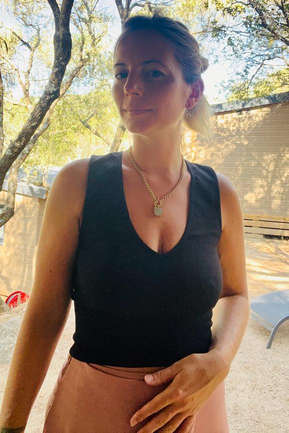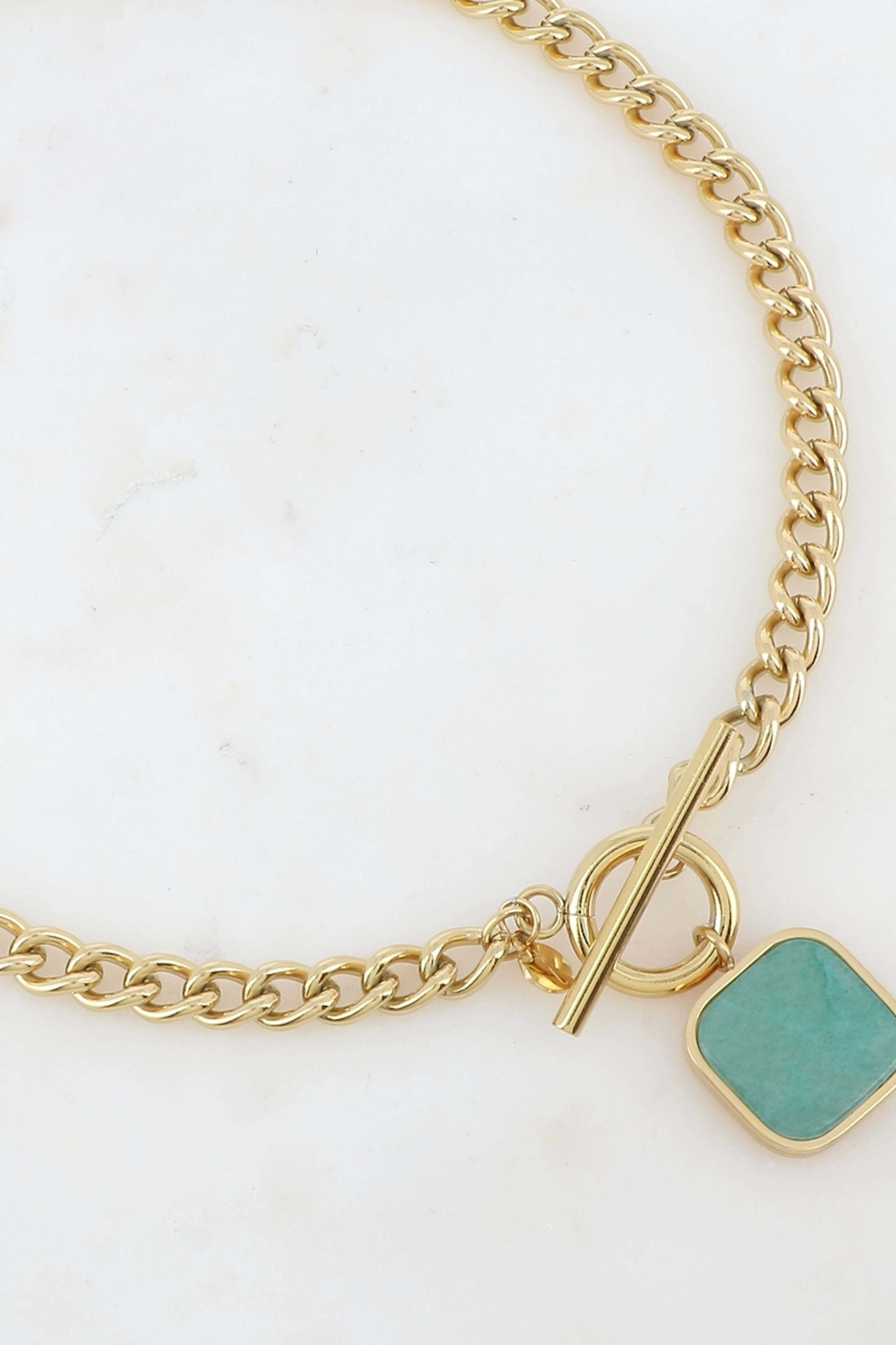 โข Collier rรฉglable sur chaine โข Pierre turquoise โข Toggle central โข Hypoallergรฉnique, ce bijou rรฉsiste ร l'eau et ne noircit pas โข Dimension: 39 + 7 cm