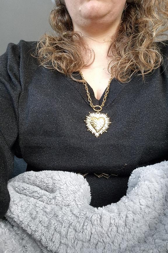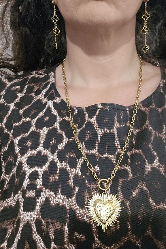 Portez ce collier avec une blouse élégante pour un look chic et intemporel. • Collier en acier inoxydable • Longueur ajustable • Pendentif détaillé • Chaîne dorée • Fermoir sécurisé