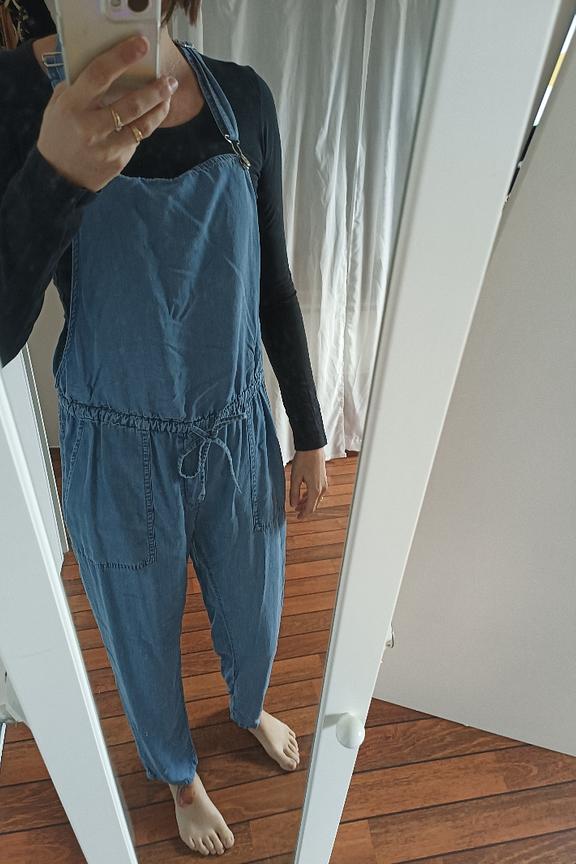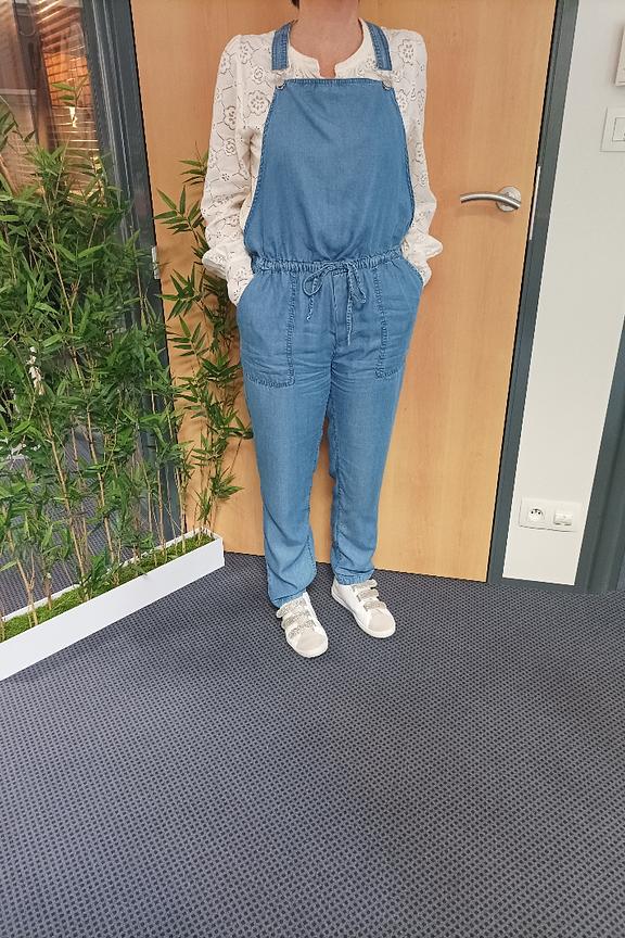 โข Longueur 32 โข Combinaison Amira โข Bretelles aux รฉpaules โข Noeud ร la taille โข Fausses poches โข Couleur unie bleue โข Ouverture dans le dos