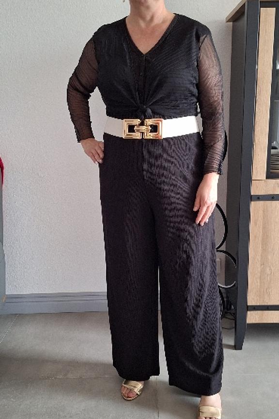 Associez cette combinaison à des sandales à talons colorées et un joli sac à main pour un look chic et moderne. Parfaite pour toutes les saisons. • Combinaison à la coupe ample • Taille ceinturée flatteuse • Manches avec volants élégants • Décolleté en V stylé • Boutons délicats sur le devant