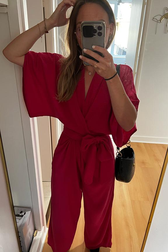 Combinaison pantalon SPEC-TA-CULAIRE pour un look inoubliable, modรจle emblรฉmatique de Make My Lemonade. โข Combinaison pantalon en viscose fuchsia โข Manches papillons โข Dรฉcolletรฉ profond en V โข Taille haute avec lien ร nouer โข Made in France