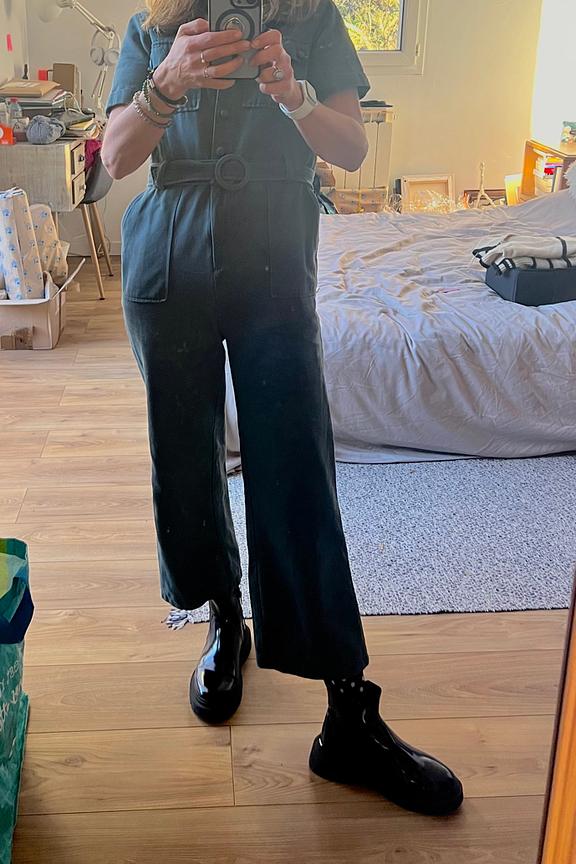 โ€œCombi assez serrรฉe . Bien pour mon 1m58 mais serrรฉ et difficile ร  enlever .โ€