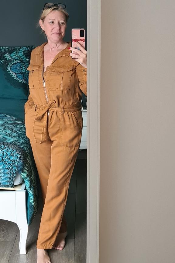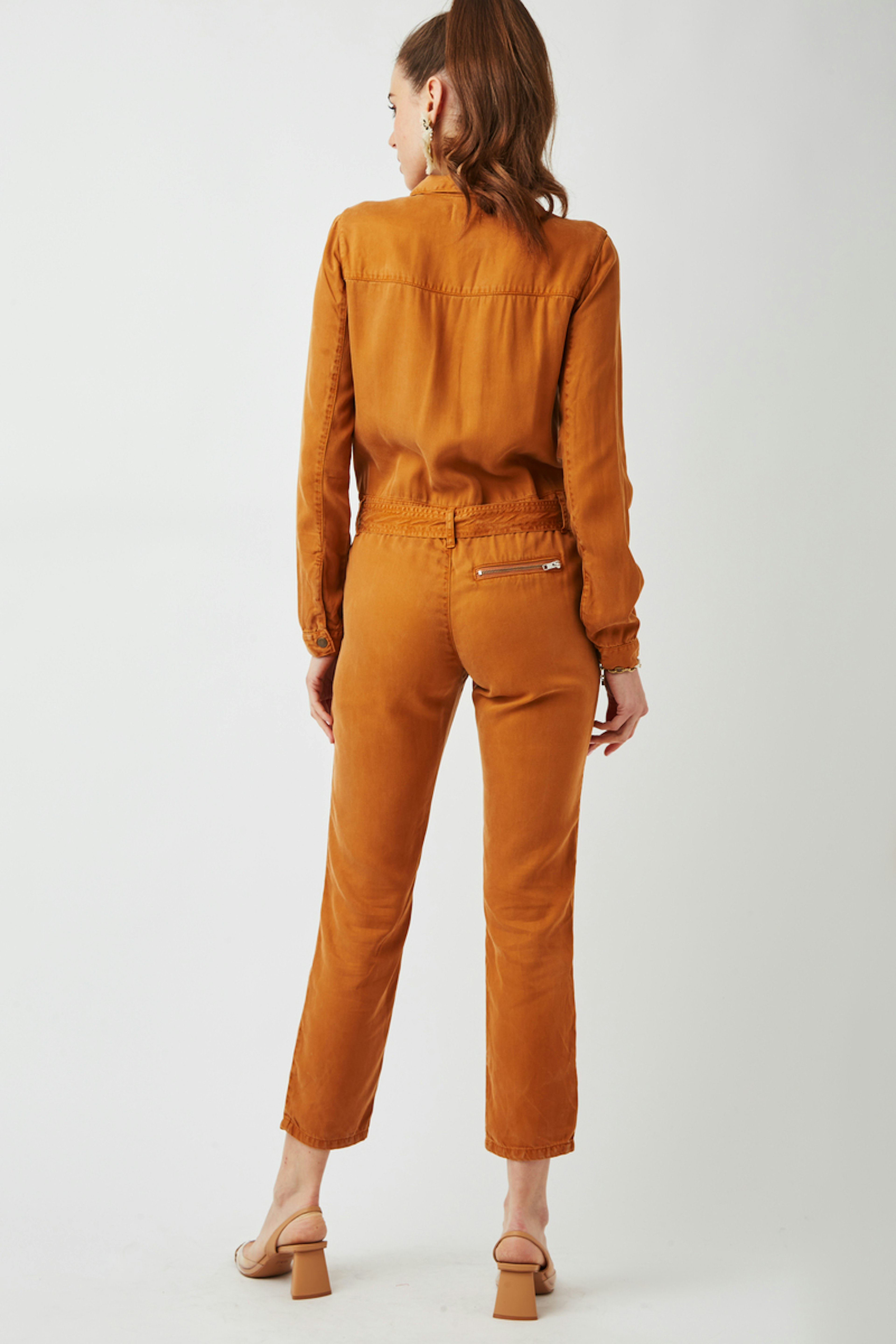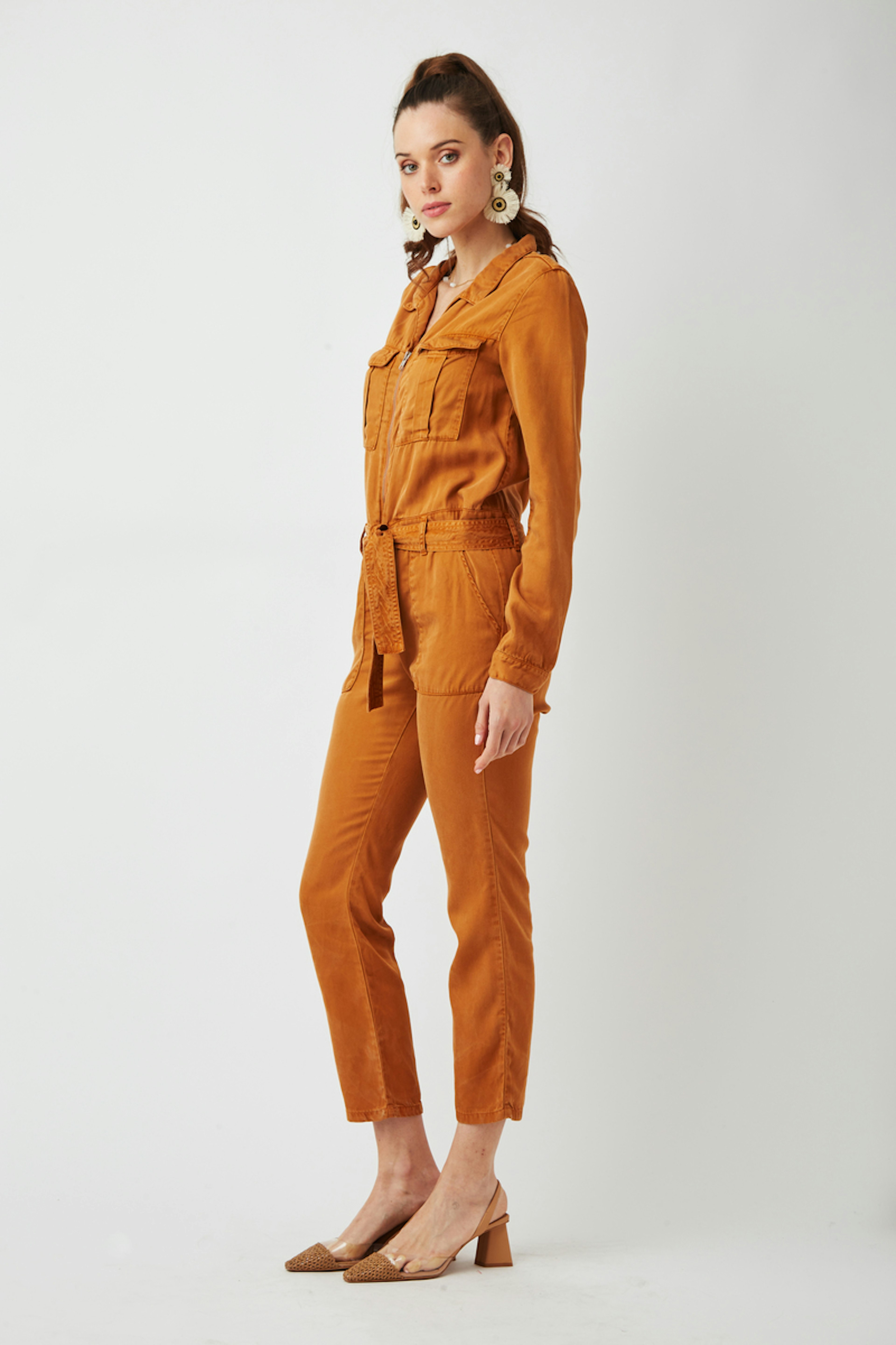 โข Combinaison ร manches longues marron conรงue en tencel โข Ceinture nouรฉe ร la taille โข Lien de serrage sur la manche โข Poche poitrine plaquรฉe ร rabat sur le devant โข 2 poches italienne ร lโavant โข Poche ร zip sur lโarriรจre โข Ouverture par zip