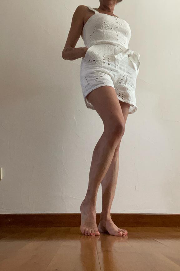 โLe haut de la combishort est trรจs trรจs beau mais faisons un mรจtre 54 je n'ai pas trouvรฉ cette combi valorisante pour ma petite silhouetteโ