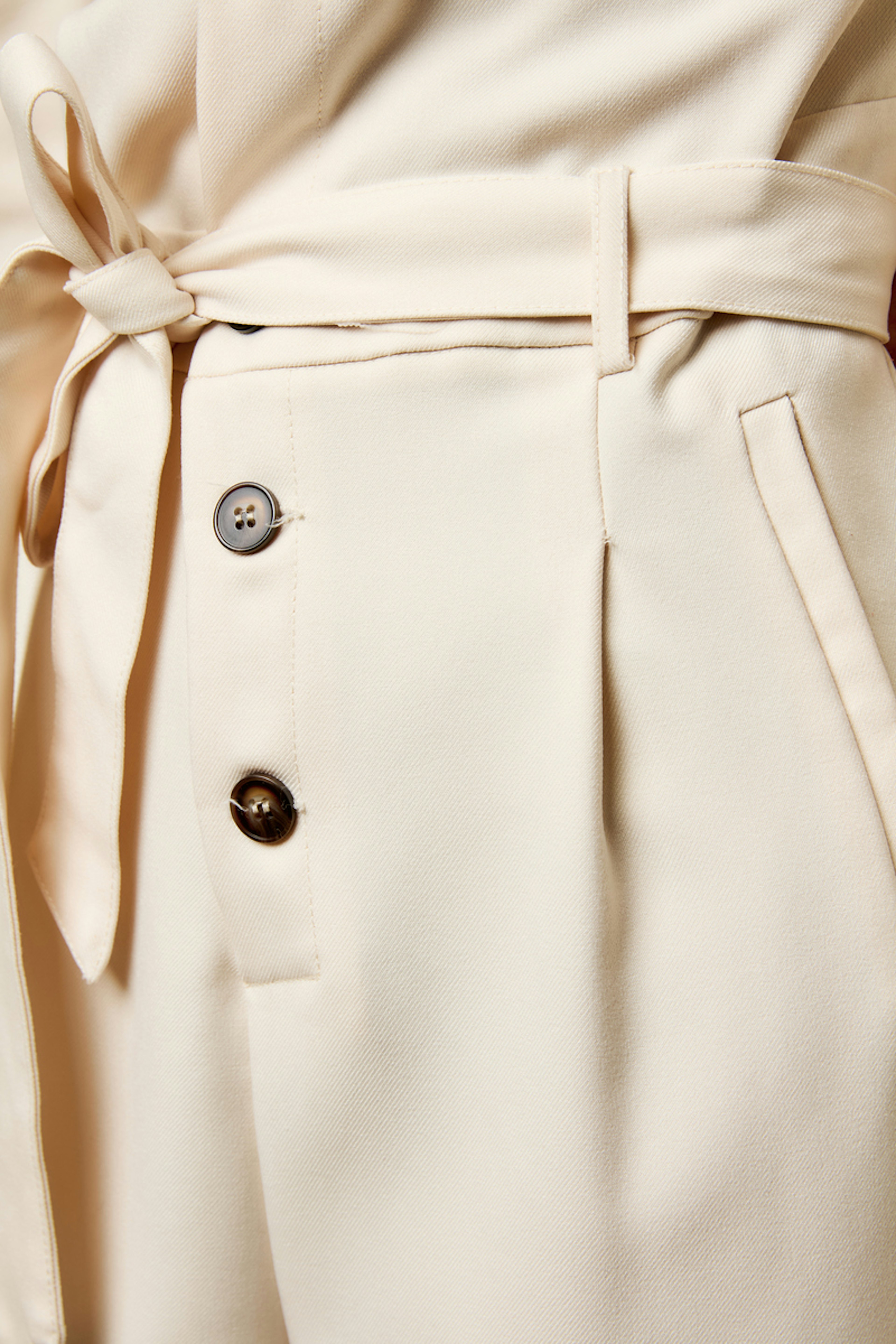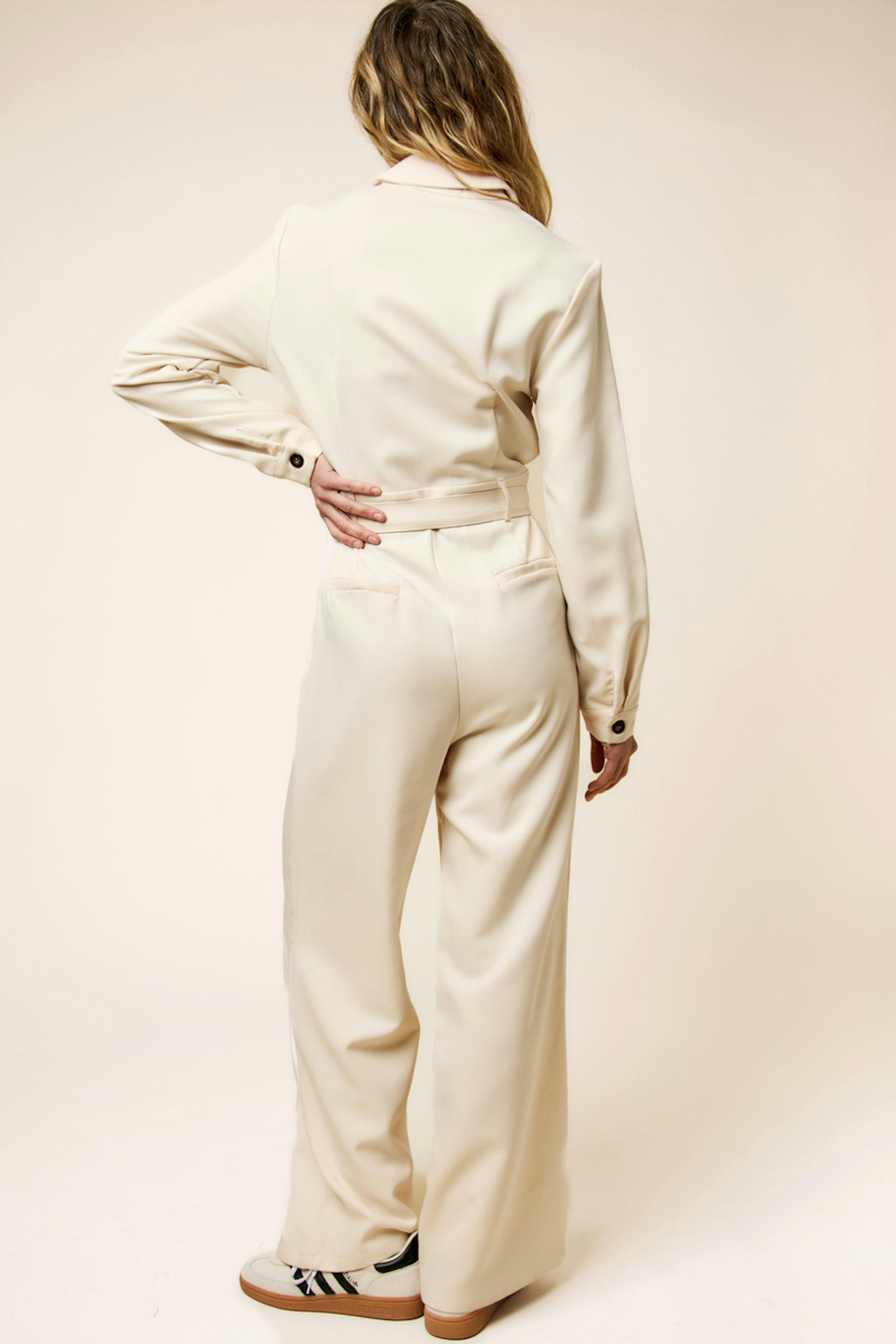 Flirtez avec l'élégance en portant cette combinaison Charlior écru, parfaite avec des talons nude. Idéal en toute saison pour un chic intemporel. • Combinaison ceinturée, tissu fluide • Coupe ajustée avec jambes évasées • Boutons contrastants, poches plaquées