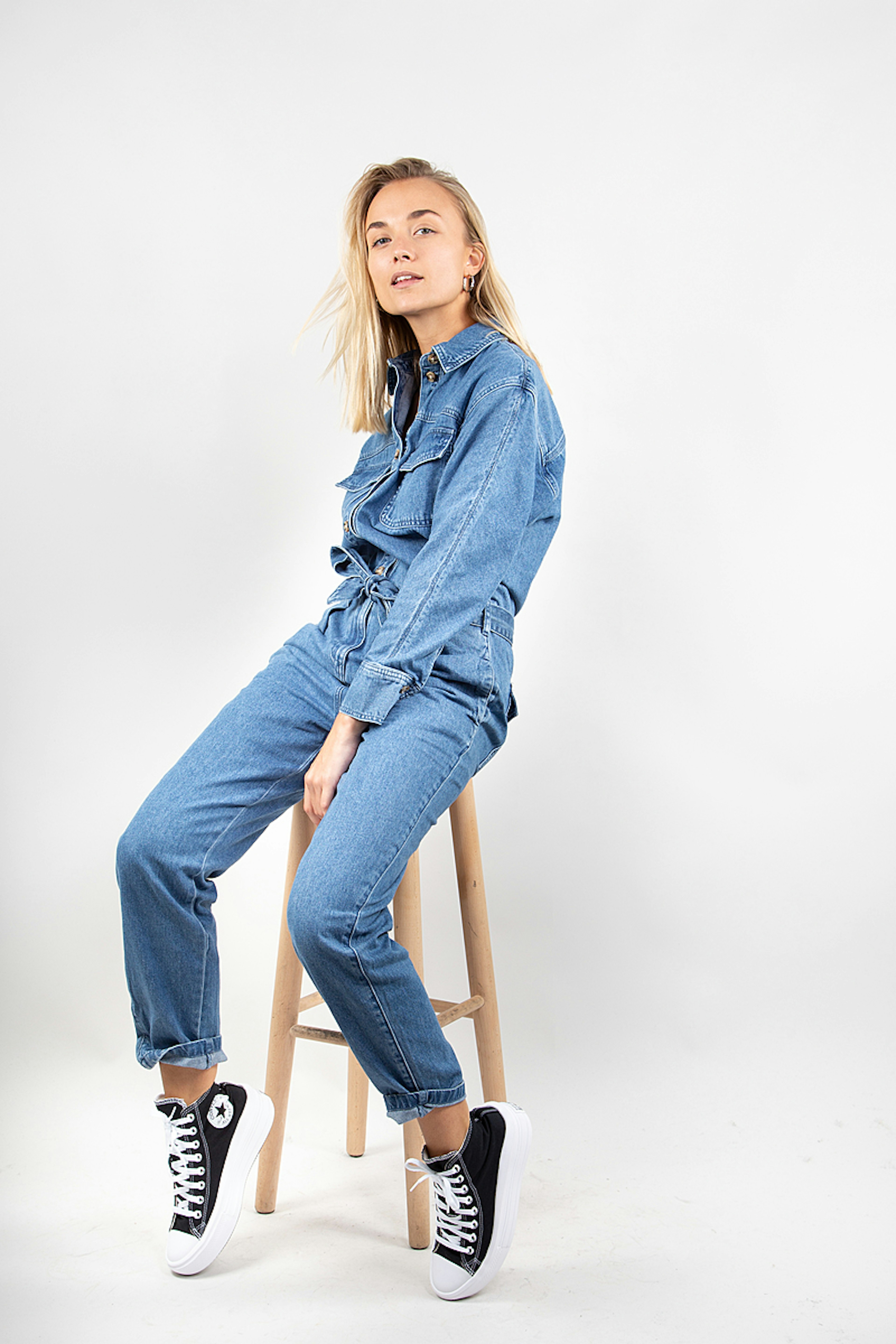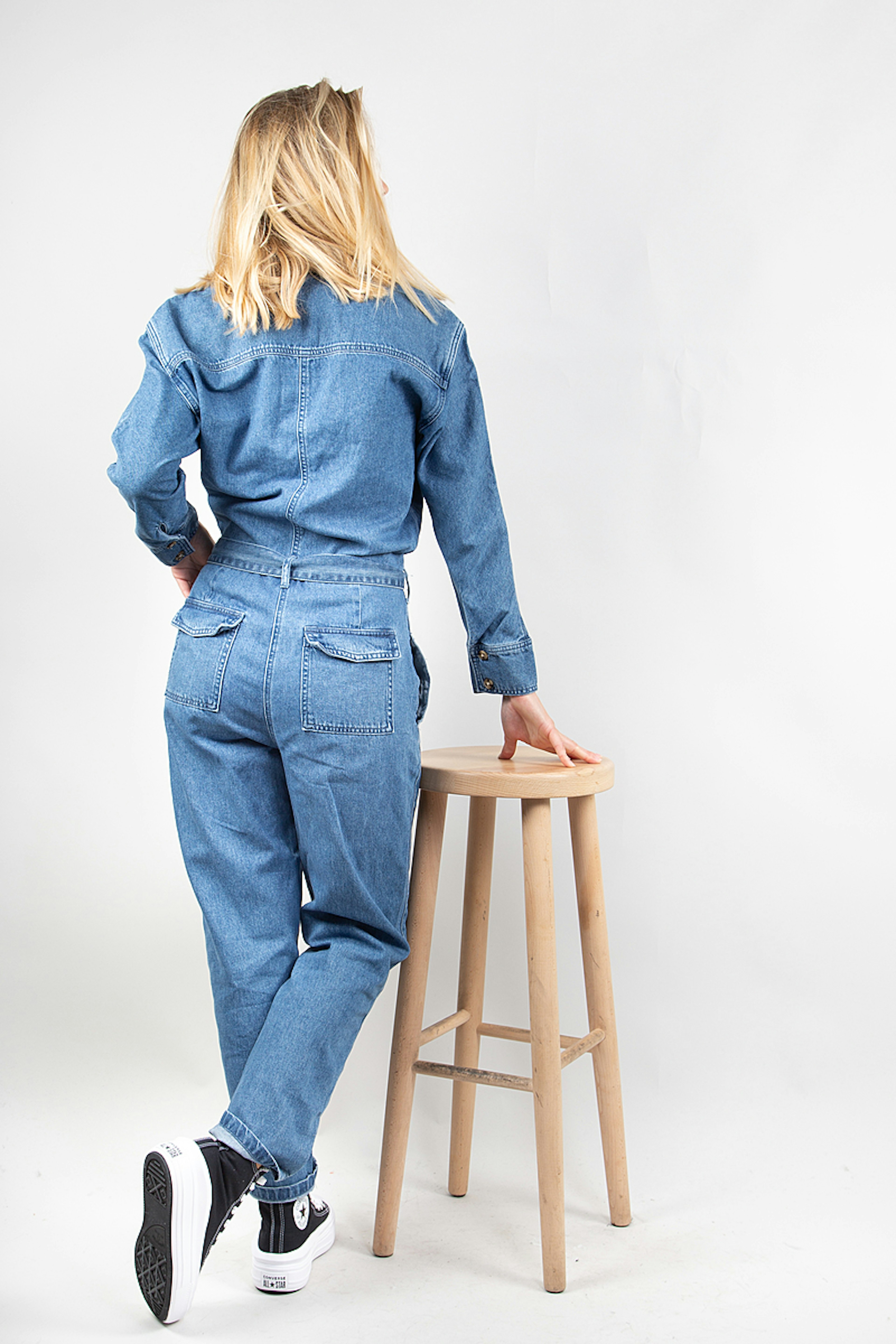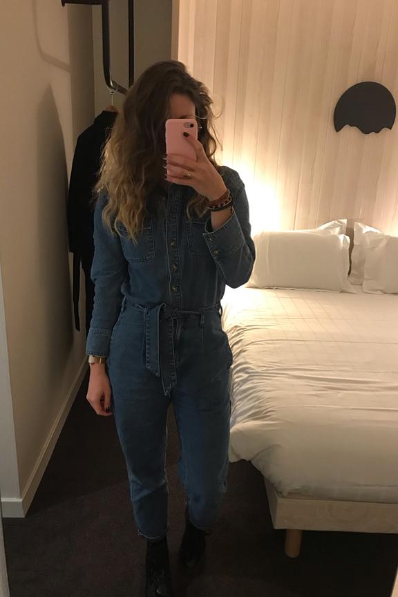 Soyez dans la tendance avec cette combinaison en denim. โข Col chemise โข Ouverture boutonnรฉe devant โข Taille marquรฉe โข Ceinture ร nouer โข Passants โข 6 poches โข Manches longues, poignets boutonnรฉs โข Jambes carrot โข Finition surpiquรฉe