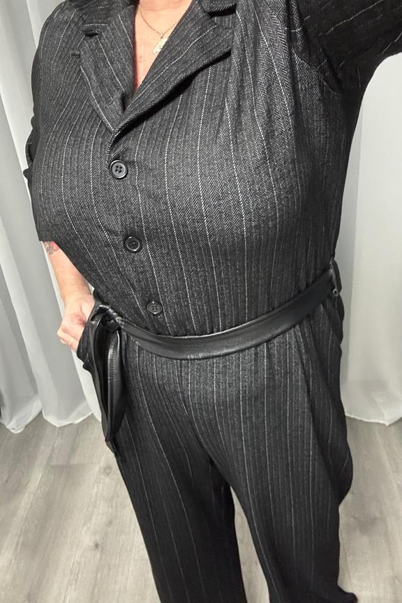 Portez cette combinaison avec des bottines et un sac en cuir pour un look รฉlรฉgant hivernal. Ajoutez un foulard pour une touche chic. โข Combinaison โข Coupe ajustรฉe โข Manches trois-quarts โข Col en V โข Motif ร fines rayures