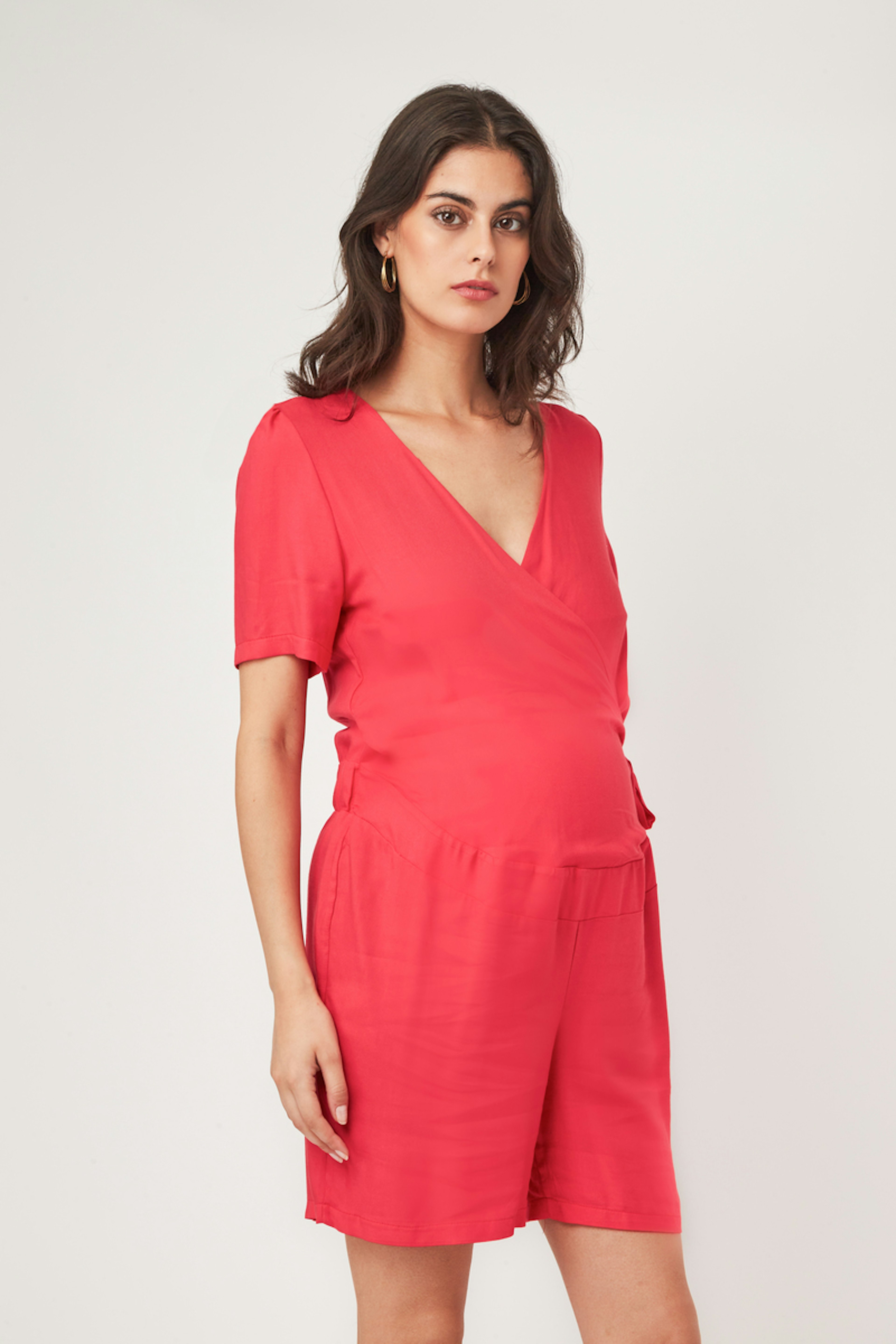 โข Combinaison maternitรฉ framboise โข Imprimรฉs all-over fleuris โข Longueur short โข Manches courtes โข Coupe portefeuille โข Ceinturรฉ ร la taille โข Dรฉcolletรฉ en V