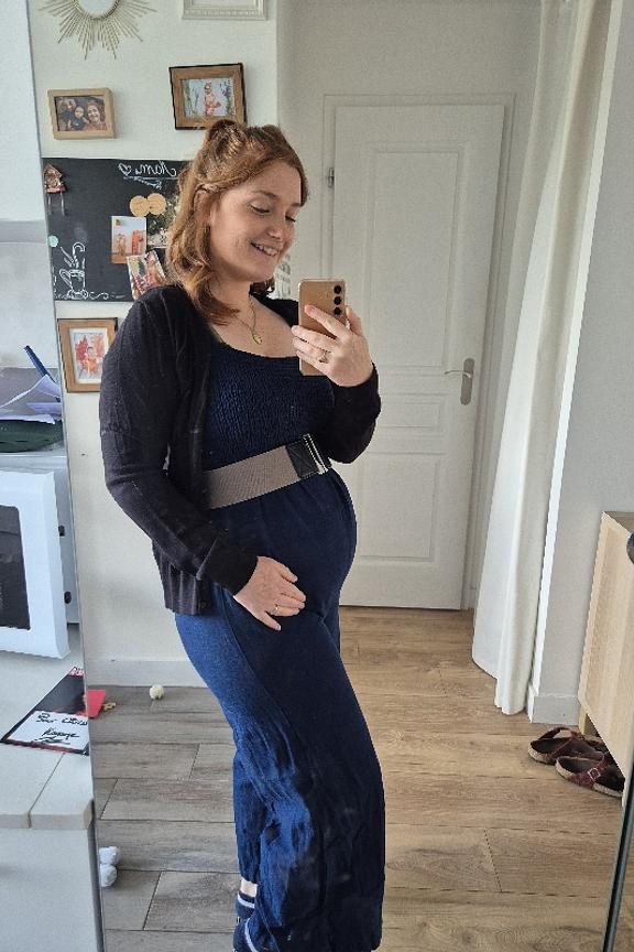 โTrรจs agrรฉable ร porter en fin de grossesse (9eme mois) les bretelles sont longues, c'est vrai, mais avec un t-shirt dessous รงa passe. Matiรจre stretch effet "jean"โ