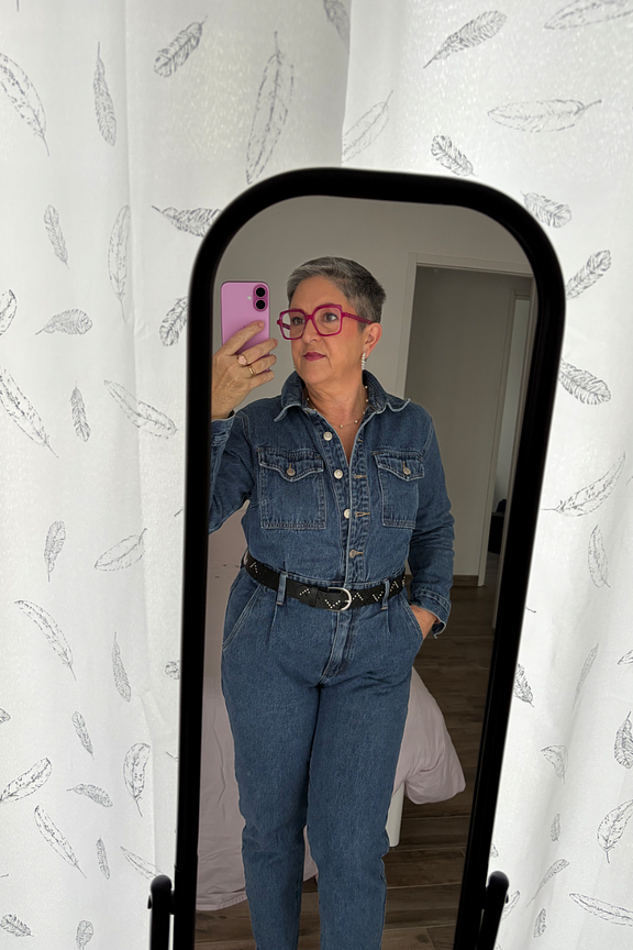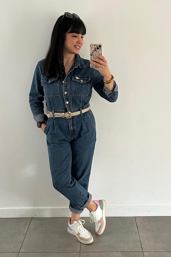 Pour un look urbain et moderne, associez cette combinaison en denim avec des baskets blanches et des boucles d'oreilles dorรฉes. Ajoutez un sac ร main en cuir pour une touche de sophistication. Parfait en toute saison. โข Combinaison en denim โข Taille marquรฉe avec ceinture intรฉgrรฉe โข Manches longues ร poignets boutonnรฉs โข Deux poches poitrine ร rabat โข Fermeture boutonnรฉe sur le devant