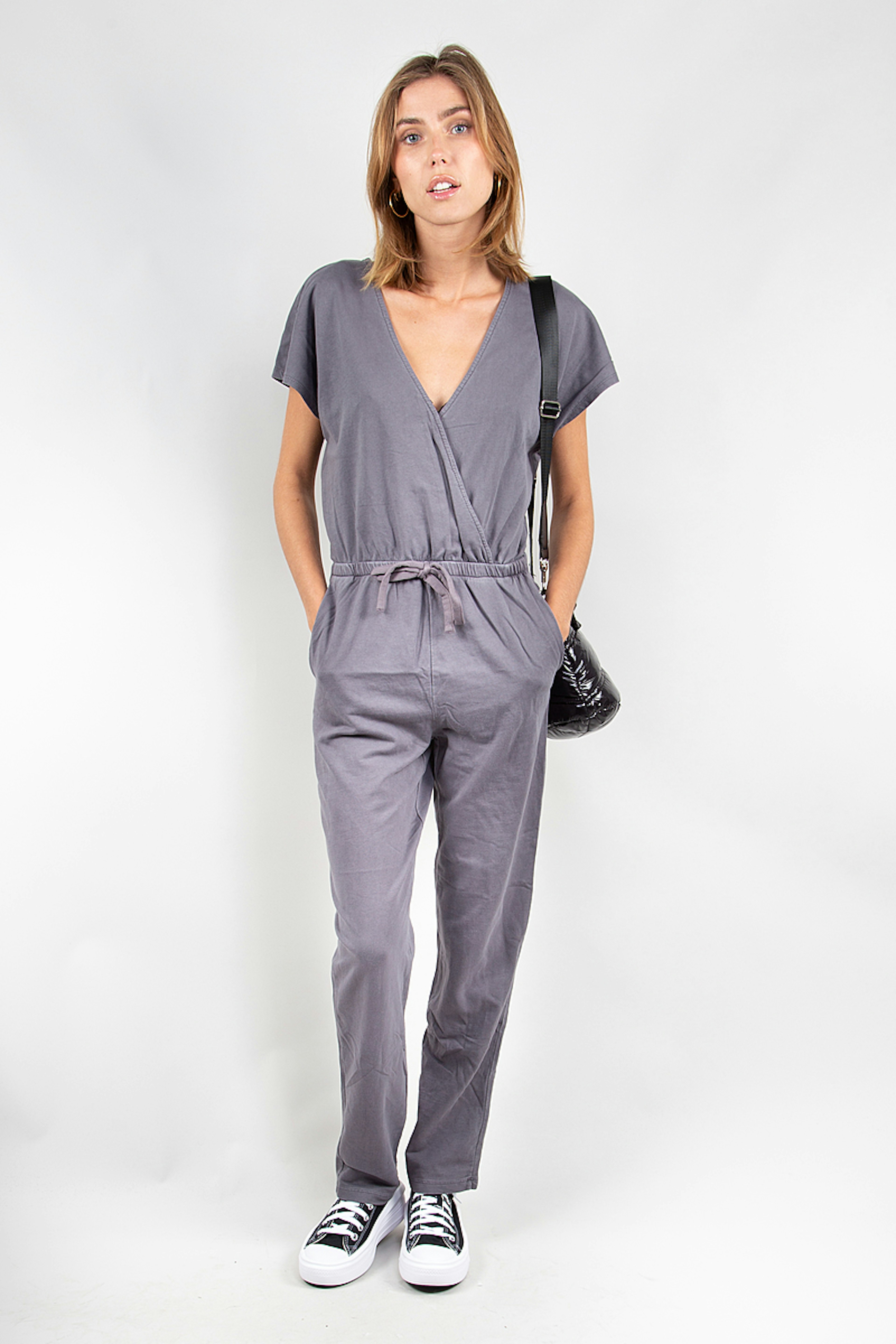 Cette combinaison en molleton gris tout doux fait partie de la collection Promod for Good. โข Molleton tout doux โข Encolure V cache coeur avec un petit bouton pression โข Pantalon carotte โข Lien de serrage ร la taille โข Poches cรดtรฉ