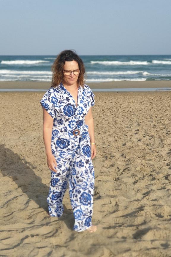 Ajoutez une paire de sandales compensées et des boucles d'oreilles dorées pour un look estival parfait. Idéale pour les journées ensoleillées. • Combinaison en coton • Manches courtes, col chemise • Pantalon large et fluide • Taille ceinturée • Motif floral