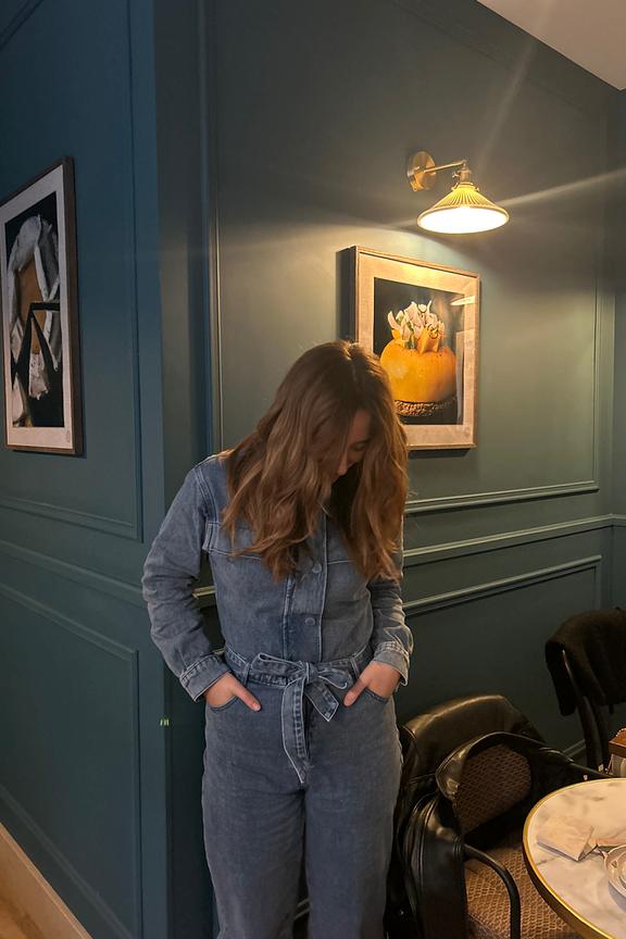 Optez pour cette combinaison en denim, parfaite avec des mocassins camel et une ceinture en cuir pour structurer la silhouette. Parfait en toute saison. โ€ข Combinaison en denim โ€ข Manches longues โ€ข Coupe droite โ€ข Ceinture ร  la taille โ€ข Poches plaquรฉes