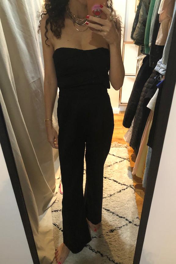 Pour un style sophistiquรฉ et moderne, associez cette combinaison bustier avec des escarpins mรฉtalliques et des bijoux dorรฉs. Parfaite pour les soirรฉes estivales ou les รฉvรฉnements habillรฉs โข Combinaison bustier en lin et viscose โข Travail de plis et drapรฉs sur le devant โข Pantalon coupe droite โข Fermeture par un zip invisible sur le cรดtรฉ