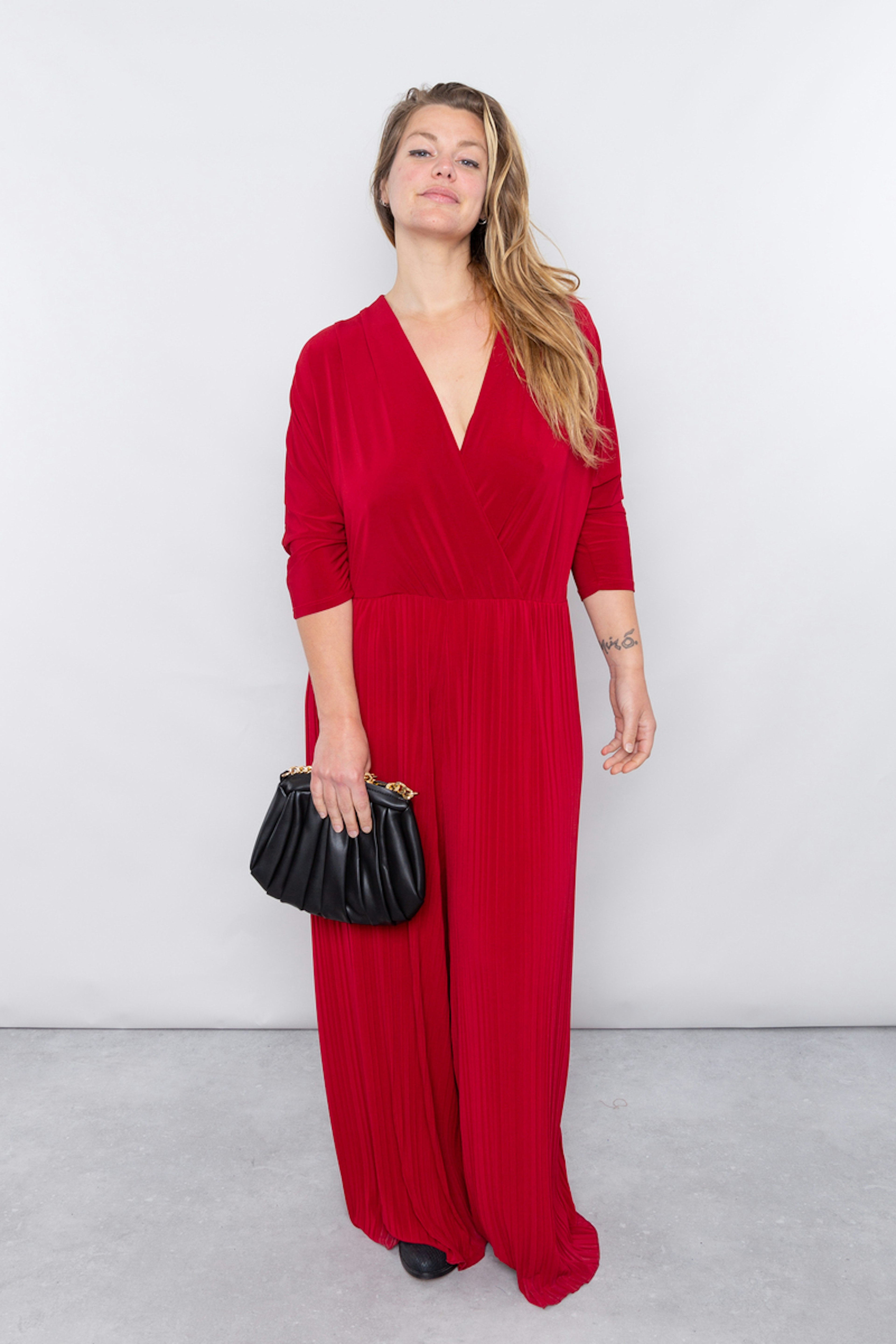 โข Combinaison ร manches longues โข Encolure forme cache coeur โข Resserrรฉe ร la taille par un รฉlastique โข Jambe large โข Longueur intรฉrieur jambe : 67 cm (pour un 44/46)