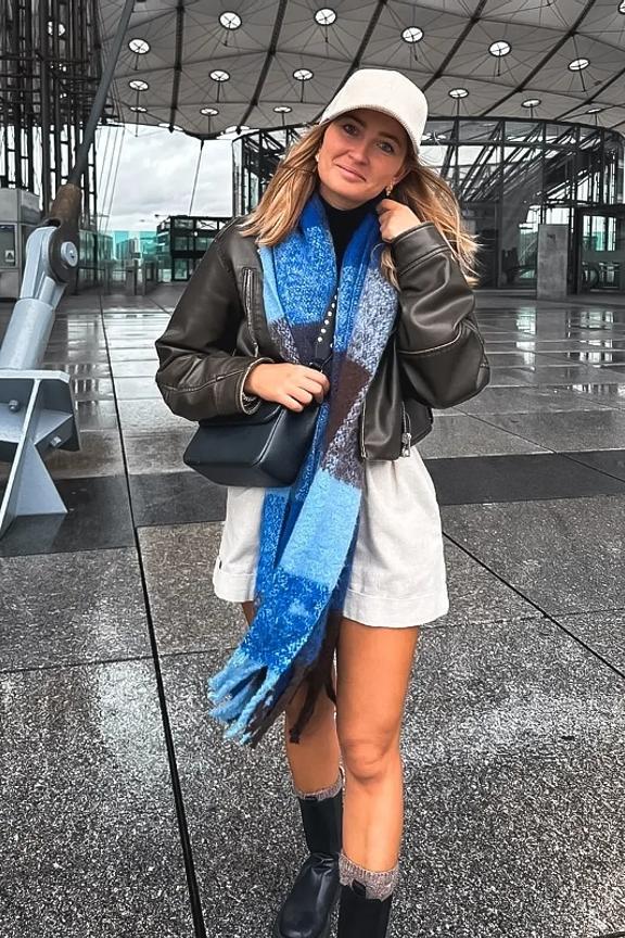 โข Echarpe ร carreaux bleu โข Dimensions : 190x44cm โข Franges รฉpaisses sur le bas de l'รฉcharpe โข Matiรจre duveteuse