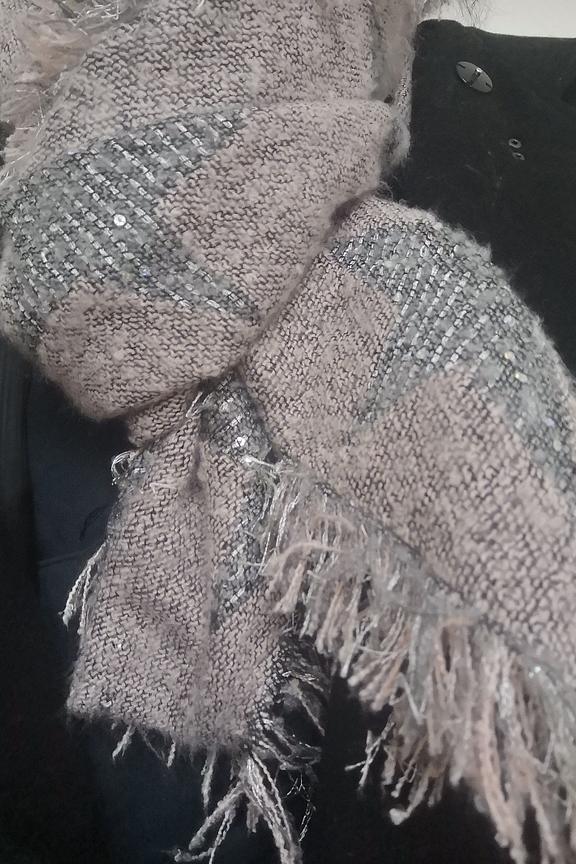 โข Grande รฉcharpe douce rose avec รฉtoiles argentรฉes โข Dรฉtails de sequins sur l'รฉcharpe