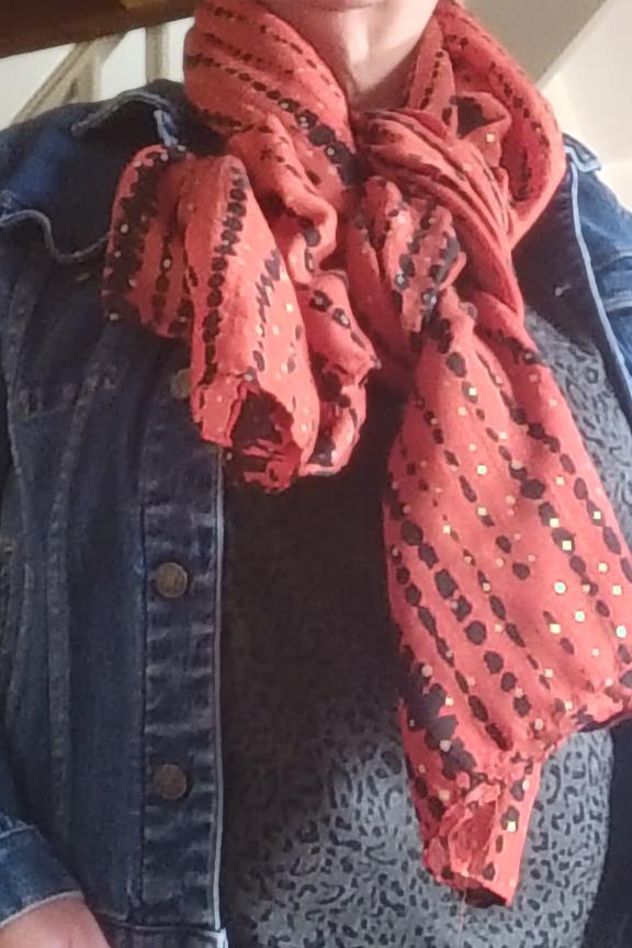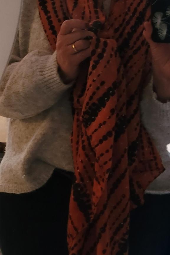 โข Foulard orange โข Imprimรฉs abstraits noirs et dorรฉs