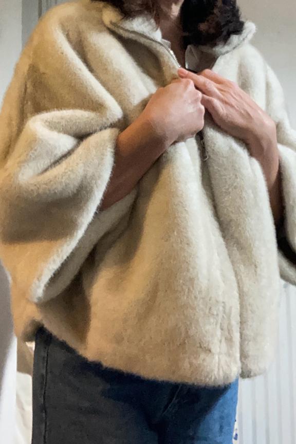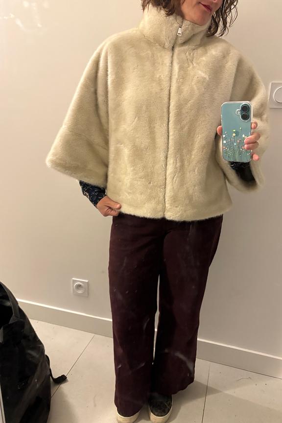Associez cette veste à un jean ajusté et des bottines pour un look chic en plein hiver. • Veste en fausse fourrure • Coupe ample • Manches trois-quarts • Fermeture éclair • Col montant