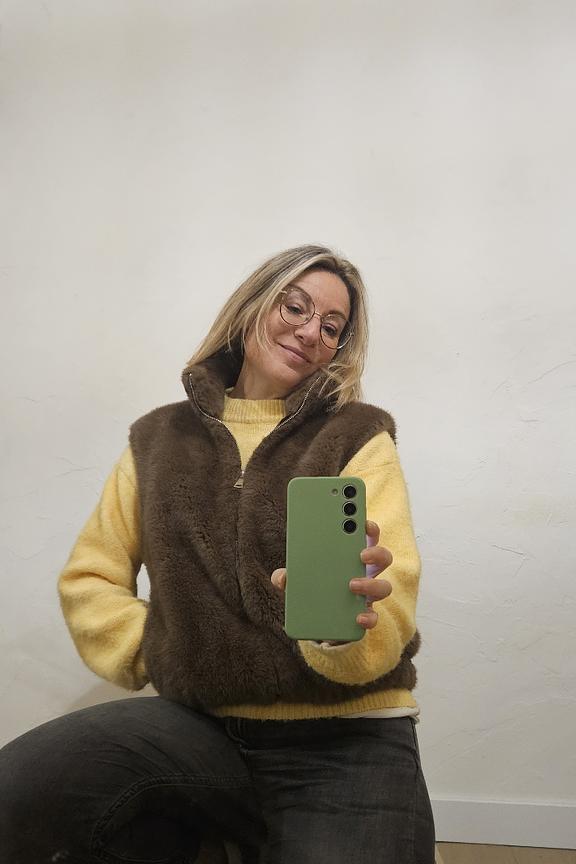Ajoutez une touche de chic ร votre garde-robe avec cette veste. Portez-la par-dessus un col roulรฉ et un jean taille haute pour une รฉlรฉgance assurรฉe en hiver. โข Veste sans manches โข Coupe droite โข Doublure douce โข Col montant โข Imitation fourrure