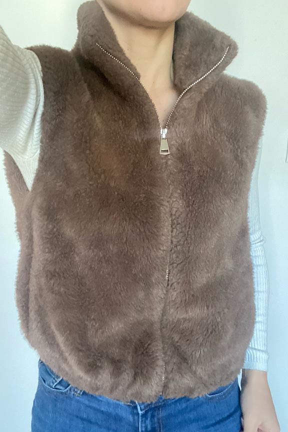 Ajoutez une touche de chic à votre garde-robe avec cette veste. Portez-la par-dessus un col roulé et un jean taille haute pour une élégance assurée en hiver. • Veste sans manches • Coupe droite • Doublure douce • Col montant • Imitation fourrure