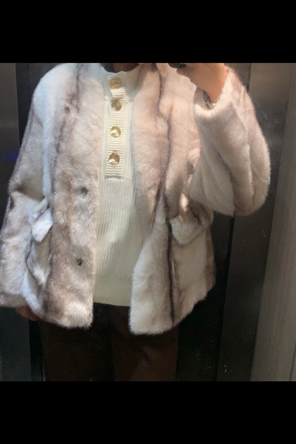 Portez cette veste en fausse fourrure avec un col roulรฉ ajustรฉ et des bottines รฉlรฉgantes pour un look chic et cosy cet hiver. โข Veste en fausse fourrure โข Coupe droite โข Manches longues โข Fermeture ouverte โข Motif marbrรฉ