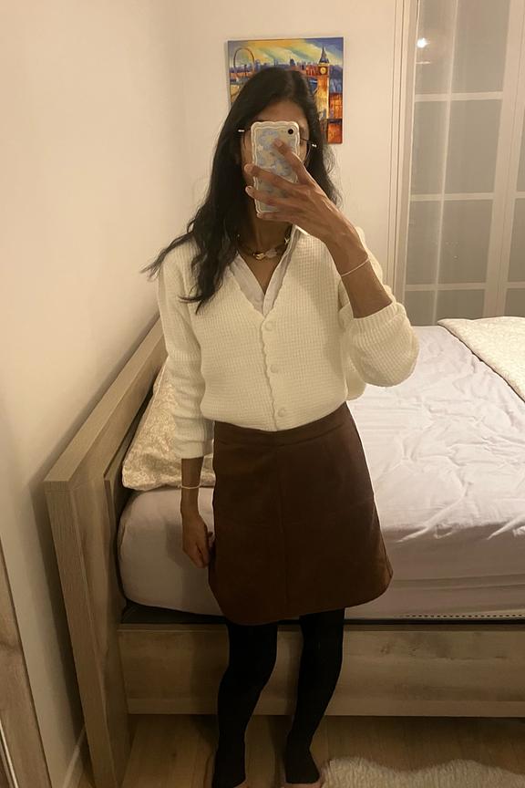 Ce gilet blanc s'accorde à merveille avec une jupe en laine pour un style hivernal chic. Ajoutez des bottines tendance pour compléter votre tenue. • Gilet en maille • Décolleté en V • Manches longues • Fermeture à boutons • Texture côtelée