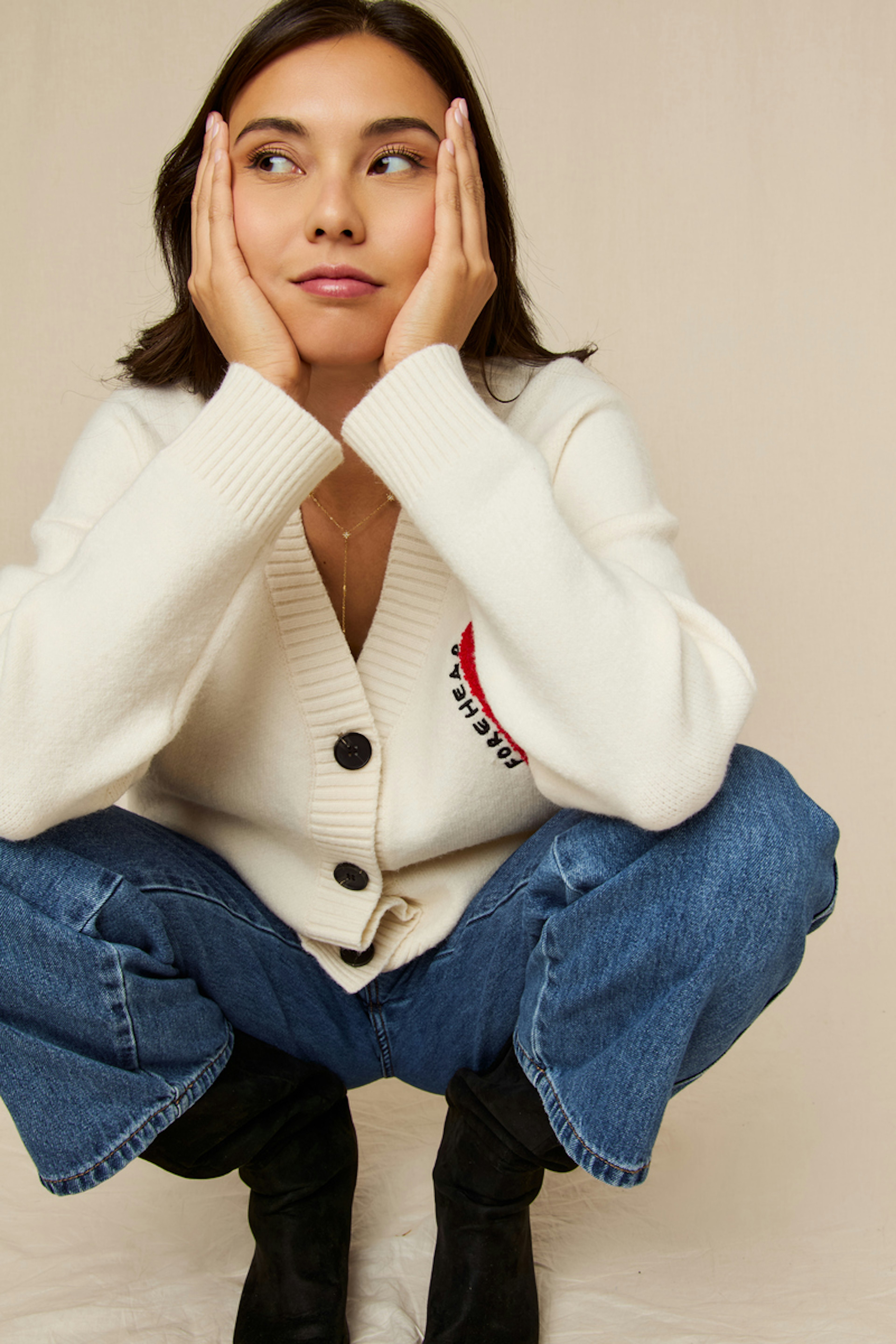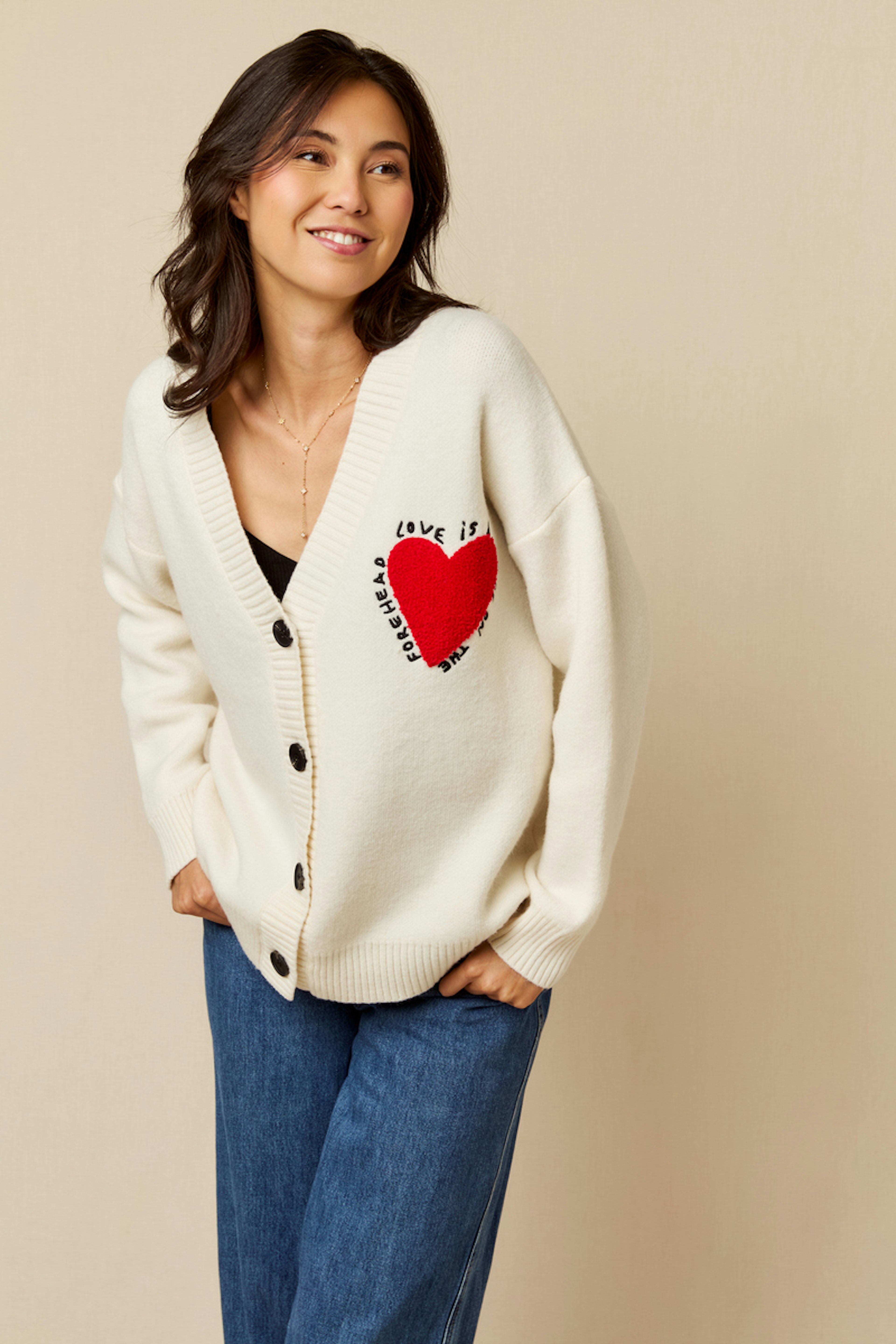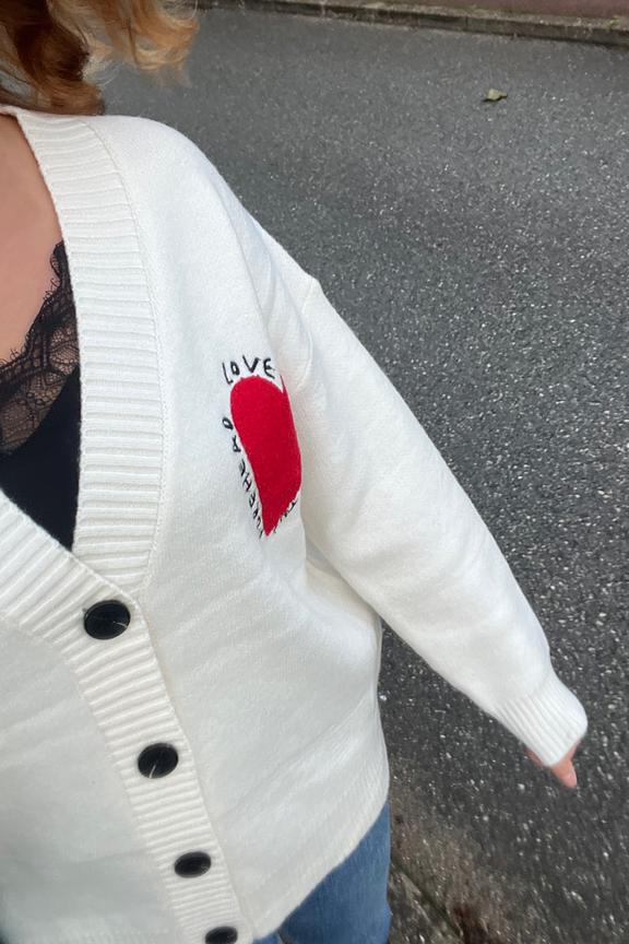 Associez ce gilet avec un jean pour une allure chic et cosy, parfait pour l'hiver. • Gilet avec imprimé • Coupe décontractée • Manches longues • Col rond • Détail cœur rouge