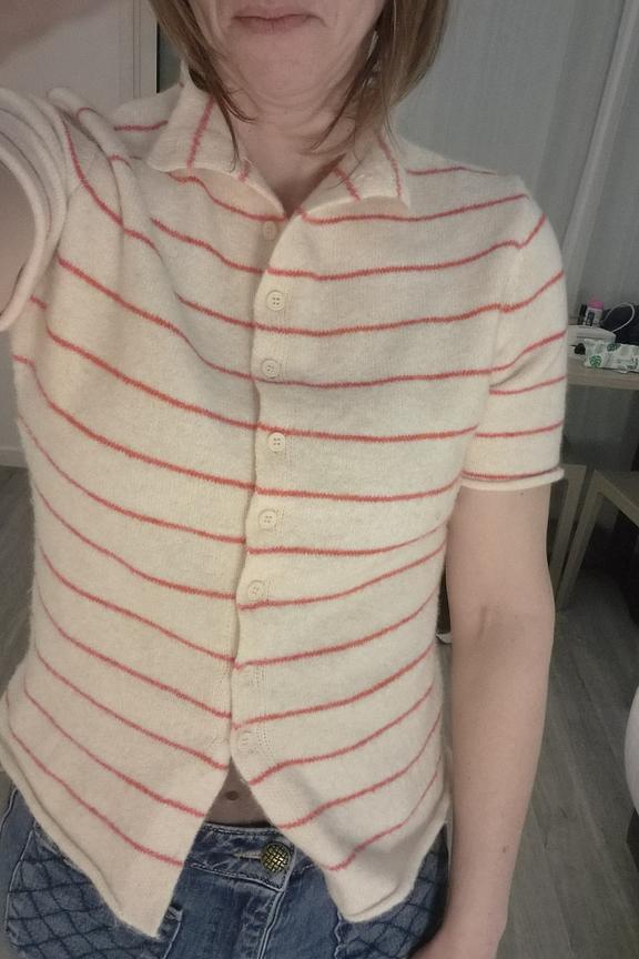 Portez ce gilet avec un jean taille haute pour un look casual. Parfait pour les soirées d'été douces. • Gilet boutonné • Col chemise • Manches courtes • Imprimé rayé • Ourlet asymétrique