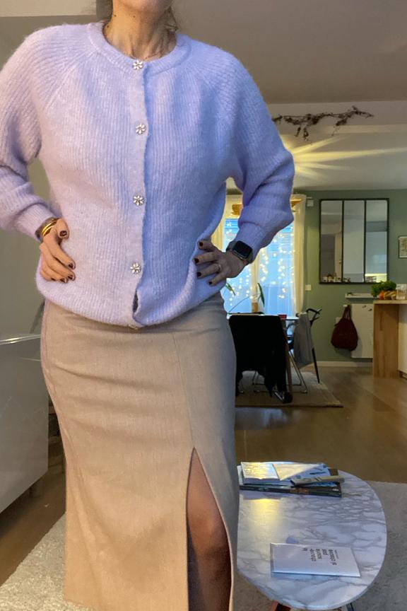 โข Cardigan ร manches longues โข Fermeture boutons bijoux โข Tricot doux โข Ourlet et poignets larges โข Col rond โข La taille unique convient du 34 au 42