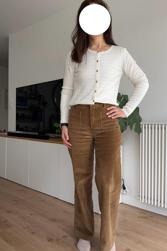 Associez ce gilet à un jean taille haute pour une allure chic et décontractée. Idéal sous un manteau douillet pour les journées fraîches. • Gilet à détails ajourés • Manches longues élégantes • Boutons délicats sur le devant • Forme ajustée et féminine • Encolure légèrement ondulée élégante