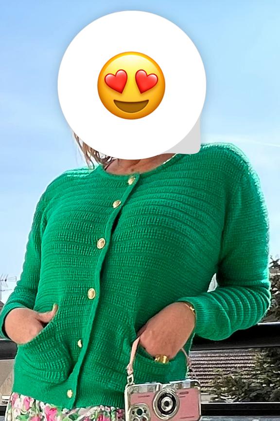 Ajoutez une touche de couleur ร vos journรฉes avec ce gilet vert, idรฉal avec un jean droit et des bottines. Parfait pour illuminer l'hiver ! โข Gilet en maille cรดtelรฉe โข Coupe ajustรฉe โข Manches longues โข Boutons dorรฉs โข Poches plaquรฉes frontales