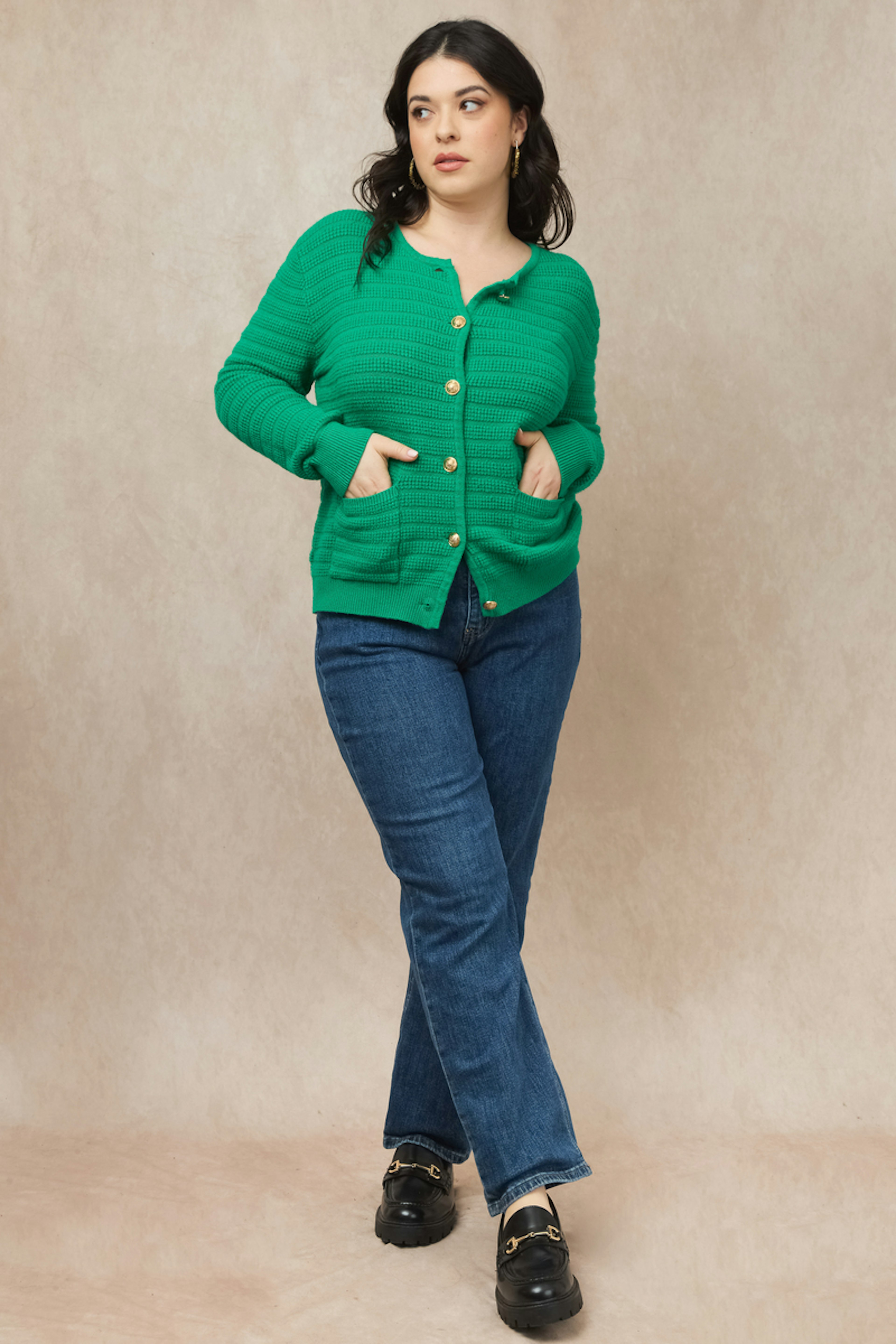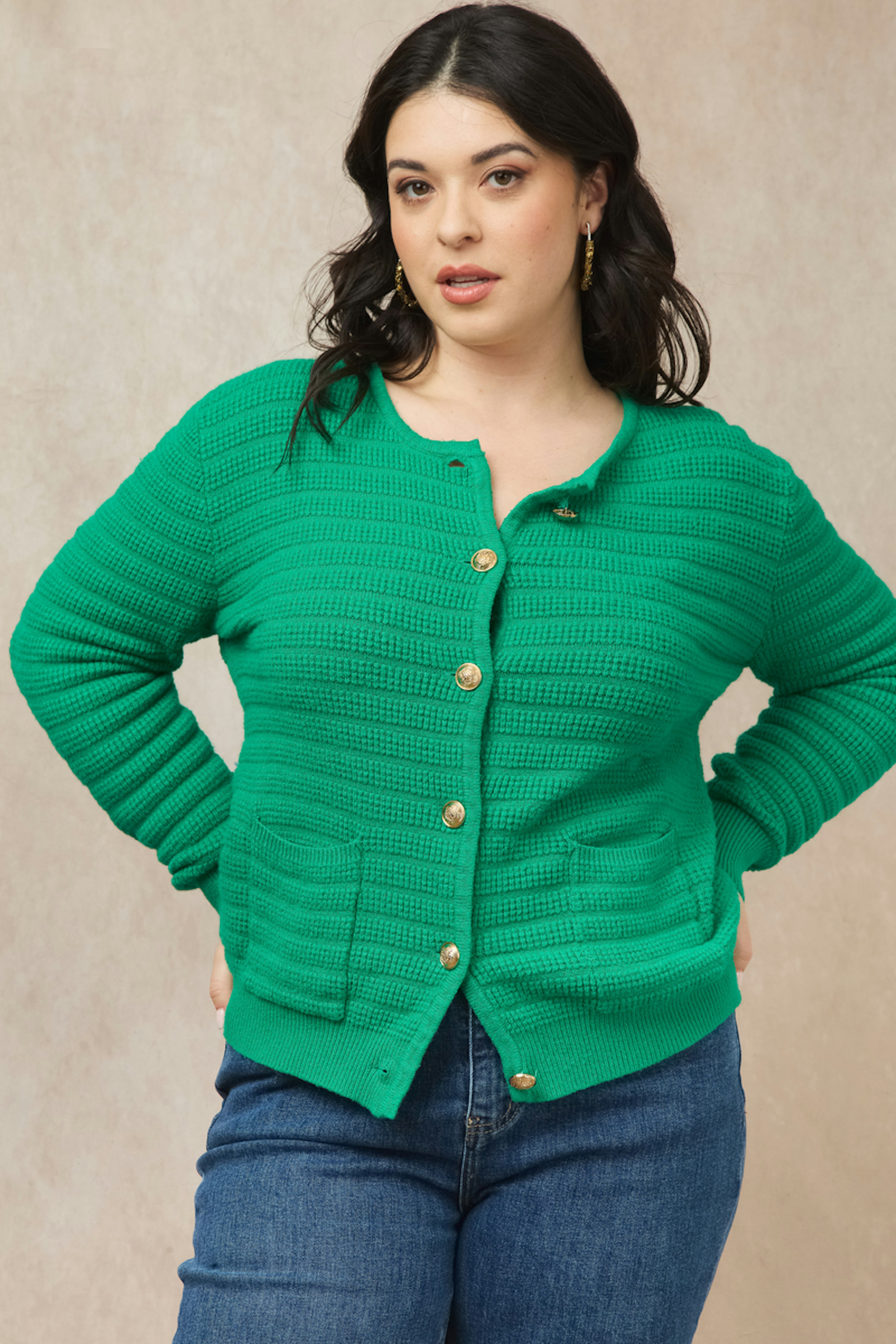 Ajoutez une touche de couleur ร  vos journรฉes avec ce gilet vert, idรฉal avec un jean droit et des bottines. Parfait pour illuminer l'hiver ! โ€ข Gilet en maille cรดtelรฉe โ€ข Coupe ajustรฉe โ€ข Manches longues โ€ข Boutons dorรฉs โ€ข Poches plaquรฉes frontales