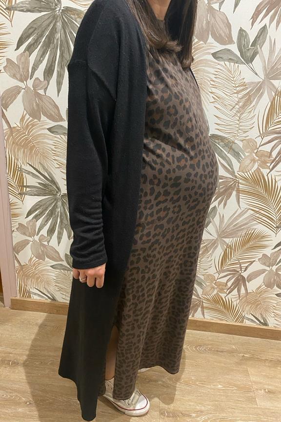 โ€ข Robe Cardigan โ€ข Couleur noire โ€ข Matiรจre viscose mรฉlangรฉe en polyester et รฉlasthanne โ€ข Col V โ€ข Coupe droite โ€ข Manches longues โ€ข Longueur midi