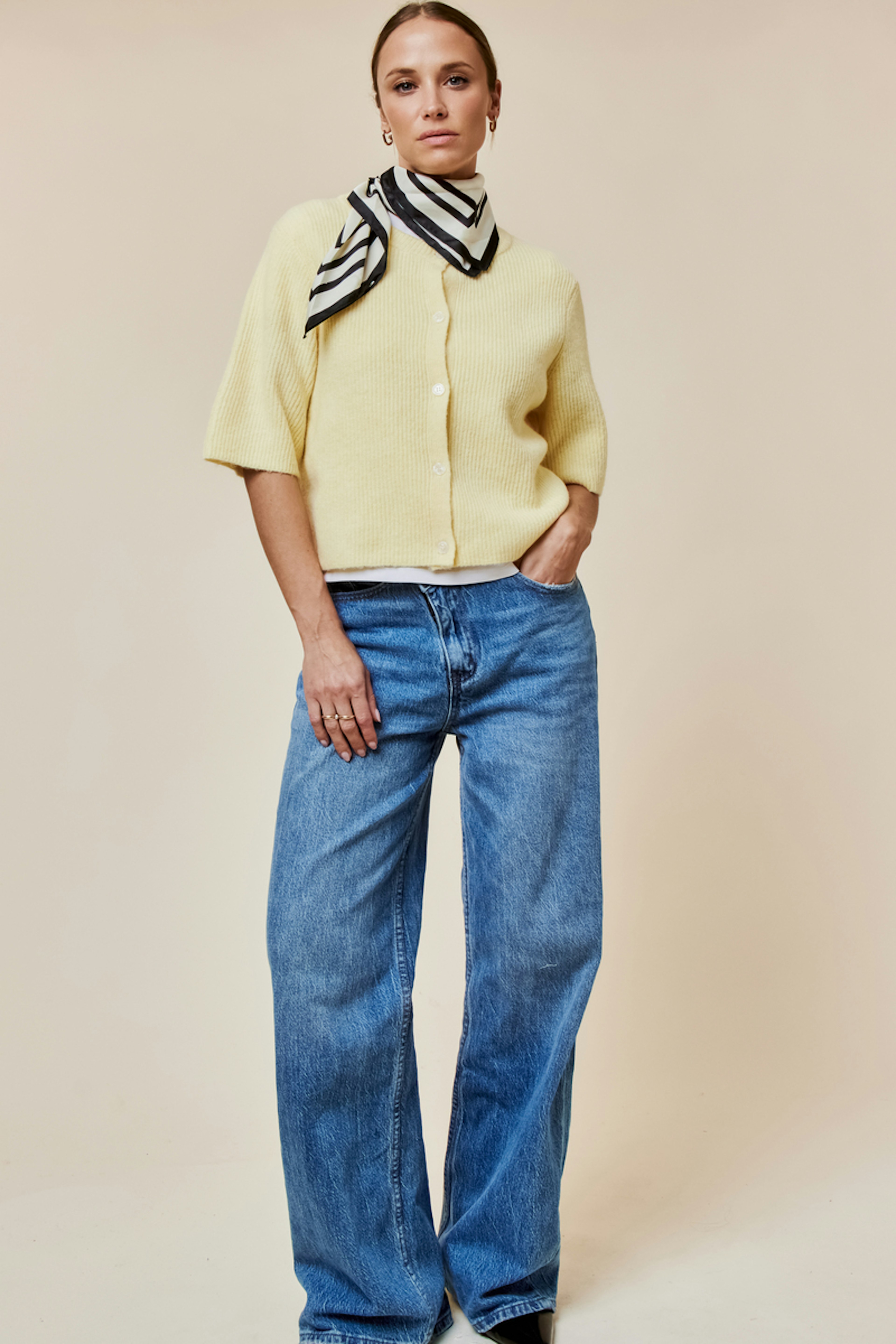Associez ce gilet léger à un pantalon en lin blanc et des sandales pour un look estival décontracté. • Gilet court en mélange de laine • Manches mi-longues • Coupe décontractée • Fermeture boutonnée • Texture légèrement texturée