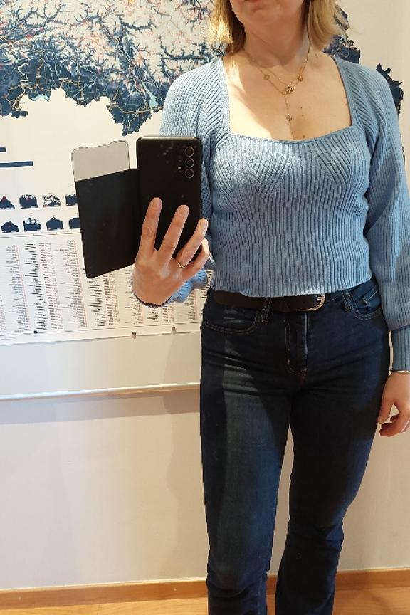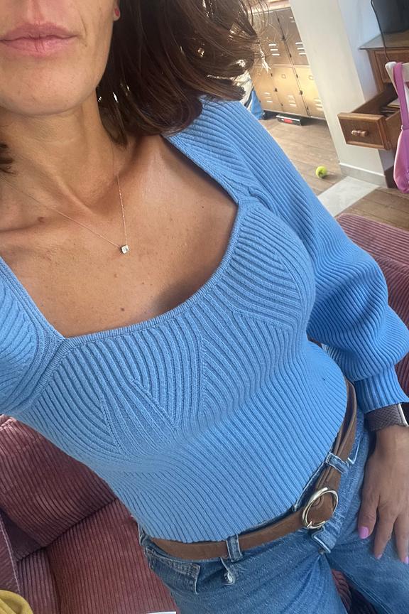 โTrรจs belle couleur, attention forte poitrine ร รฉviter car la coupe du dรฉcolletรฉ est serrรฉe. Dommage un peu trop crop top pour moi (on voit le ventre mรชme avec jean taille haute)โ
