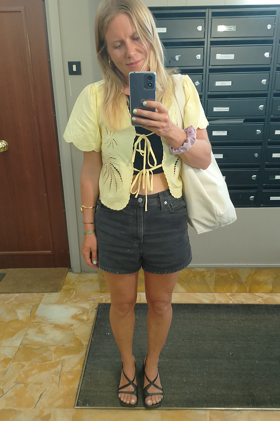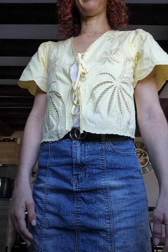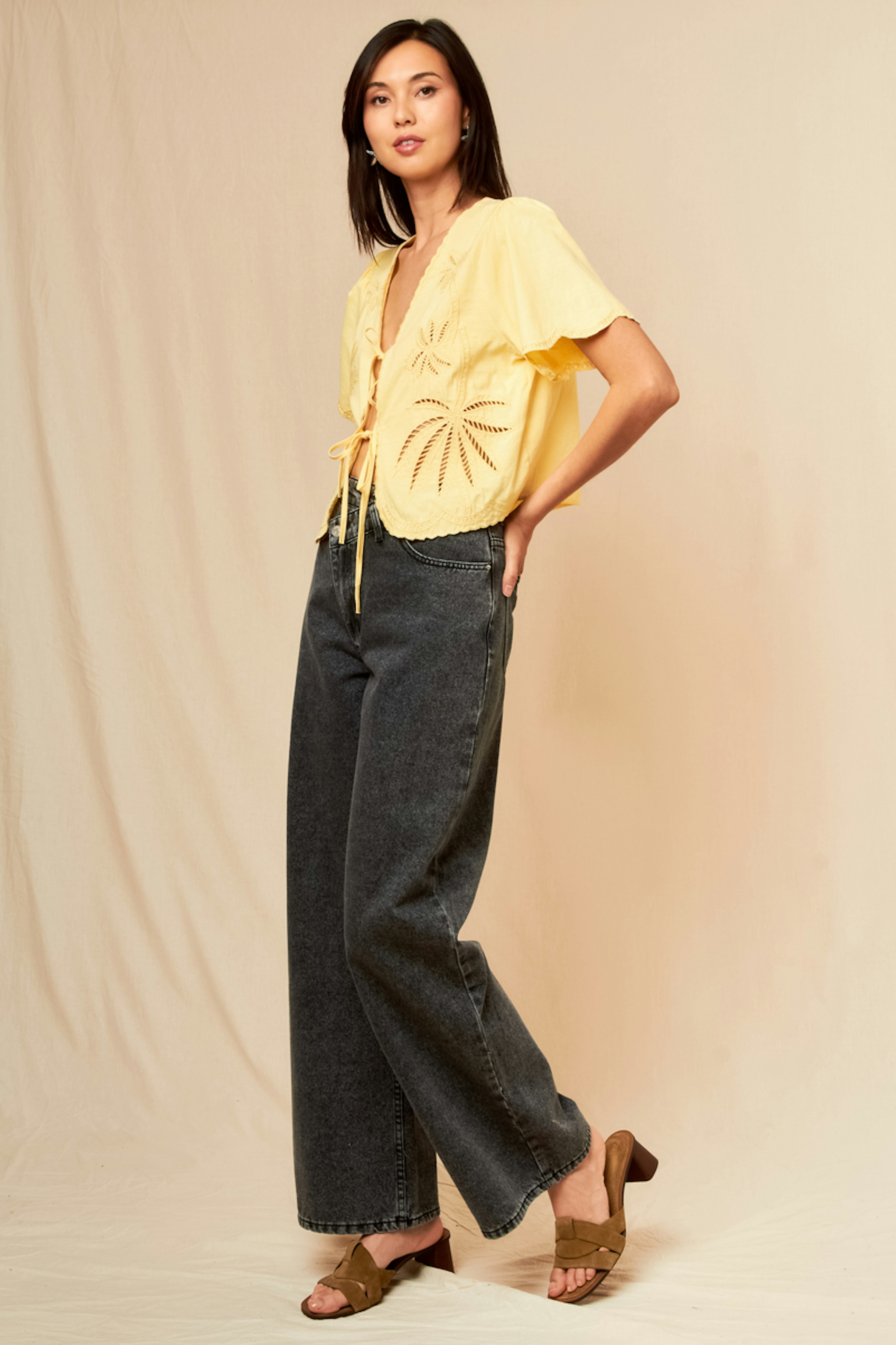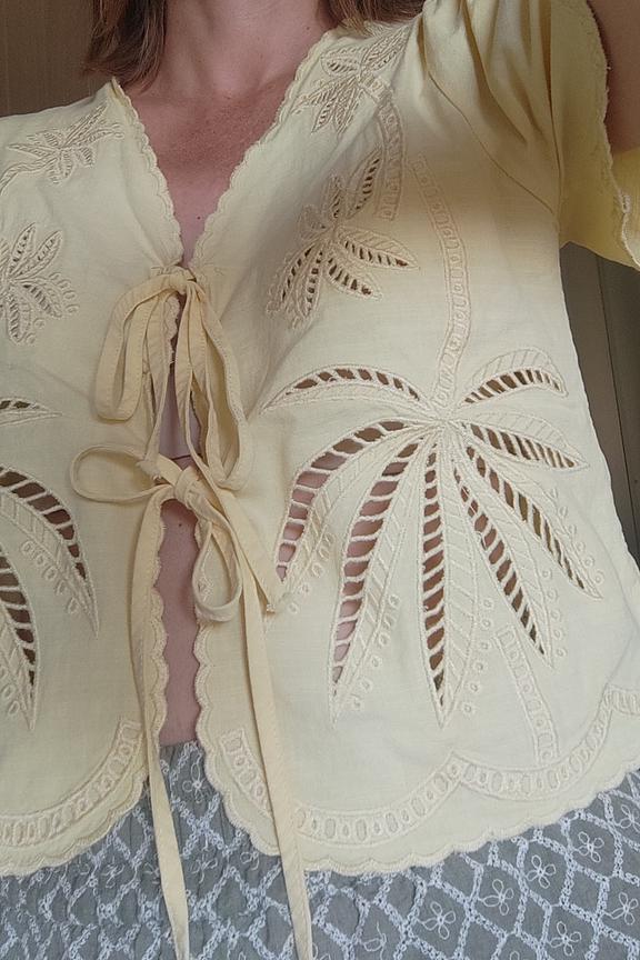 Portez-le avec un jean taille haute et des sandales pour un look estival décontracté. • Top en coton • Manches courtes • Décolleté en V • Liens à nouer devant • Broderies florales